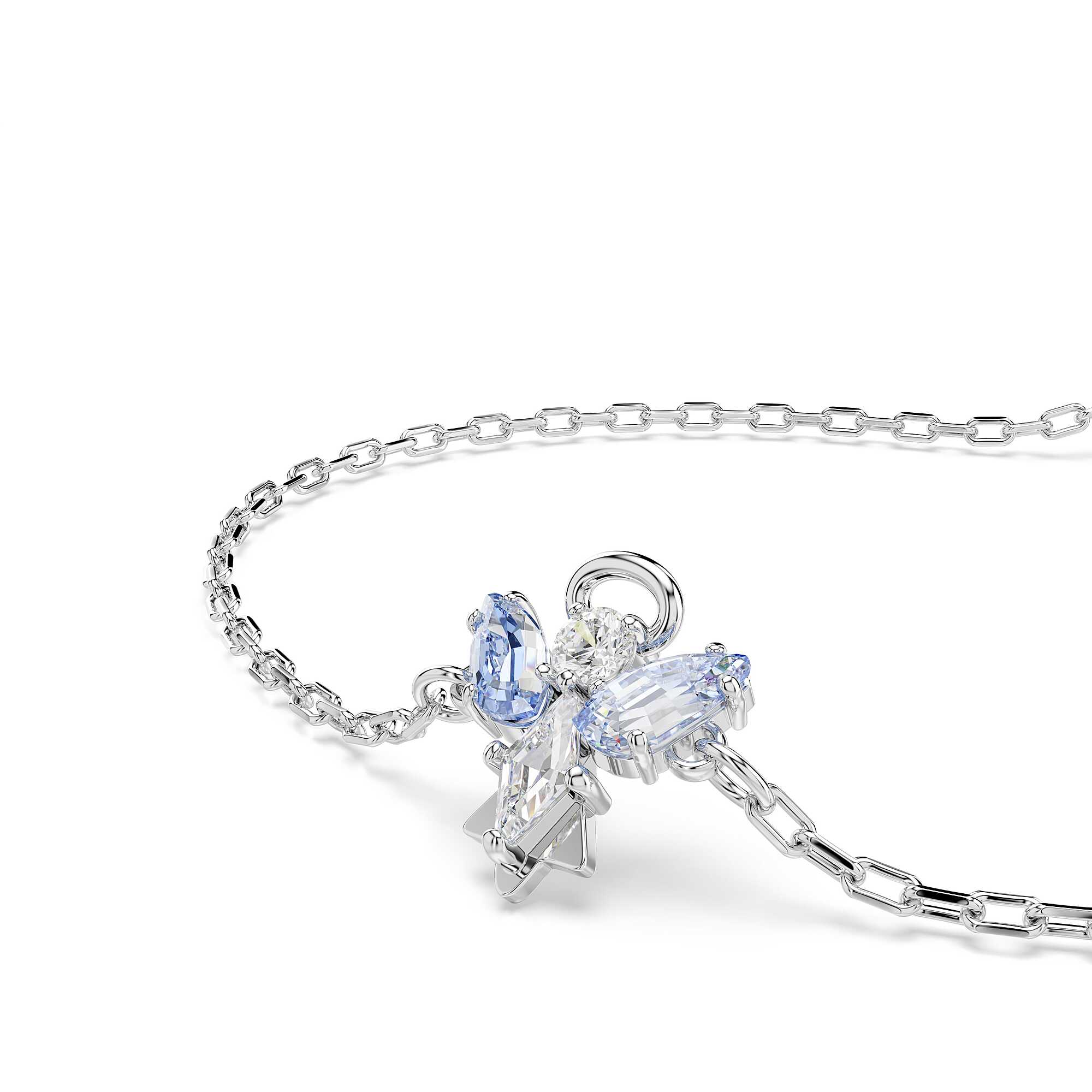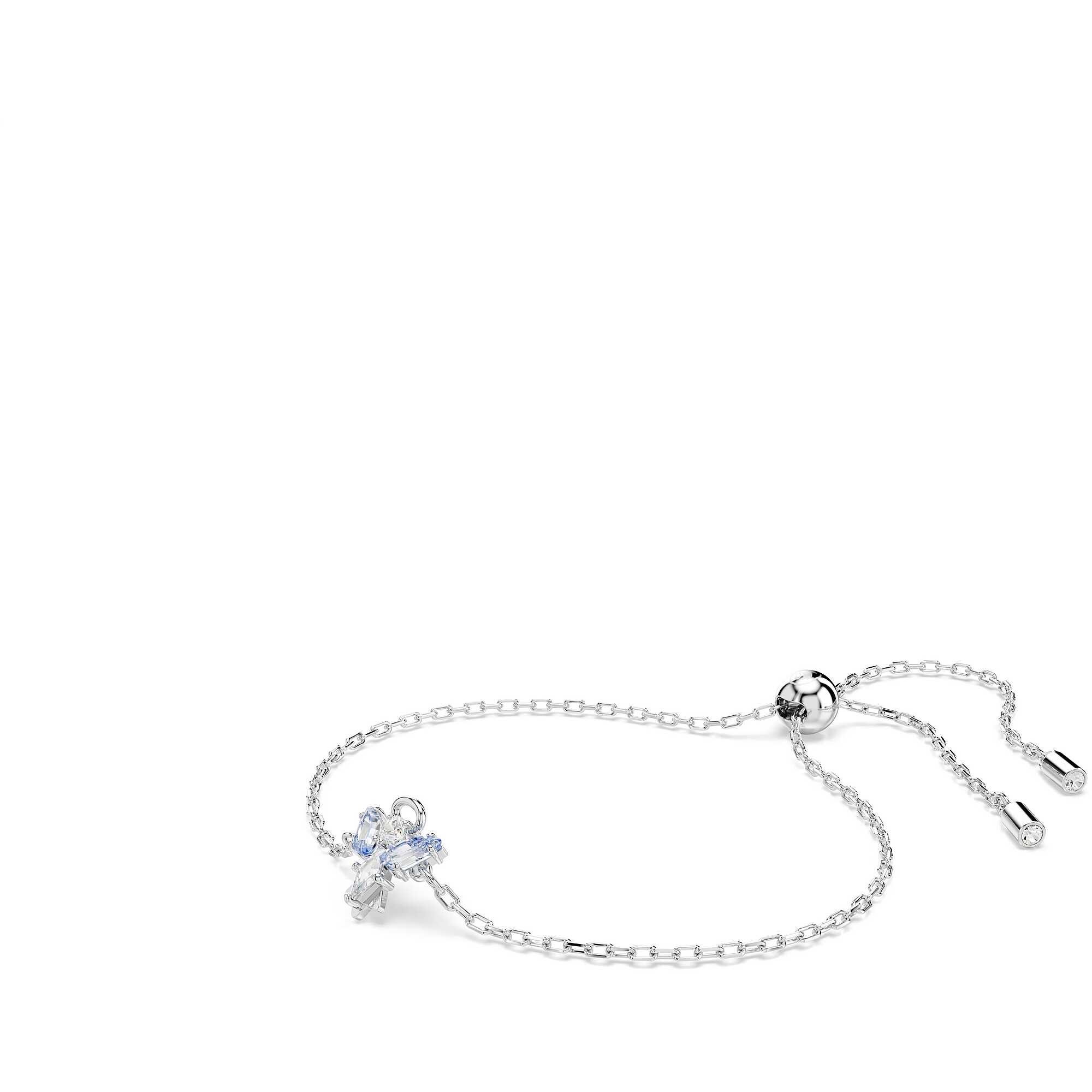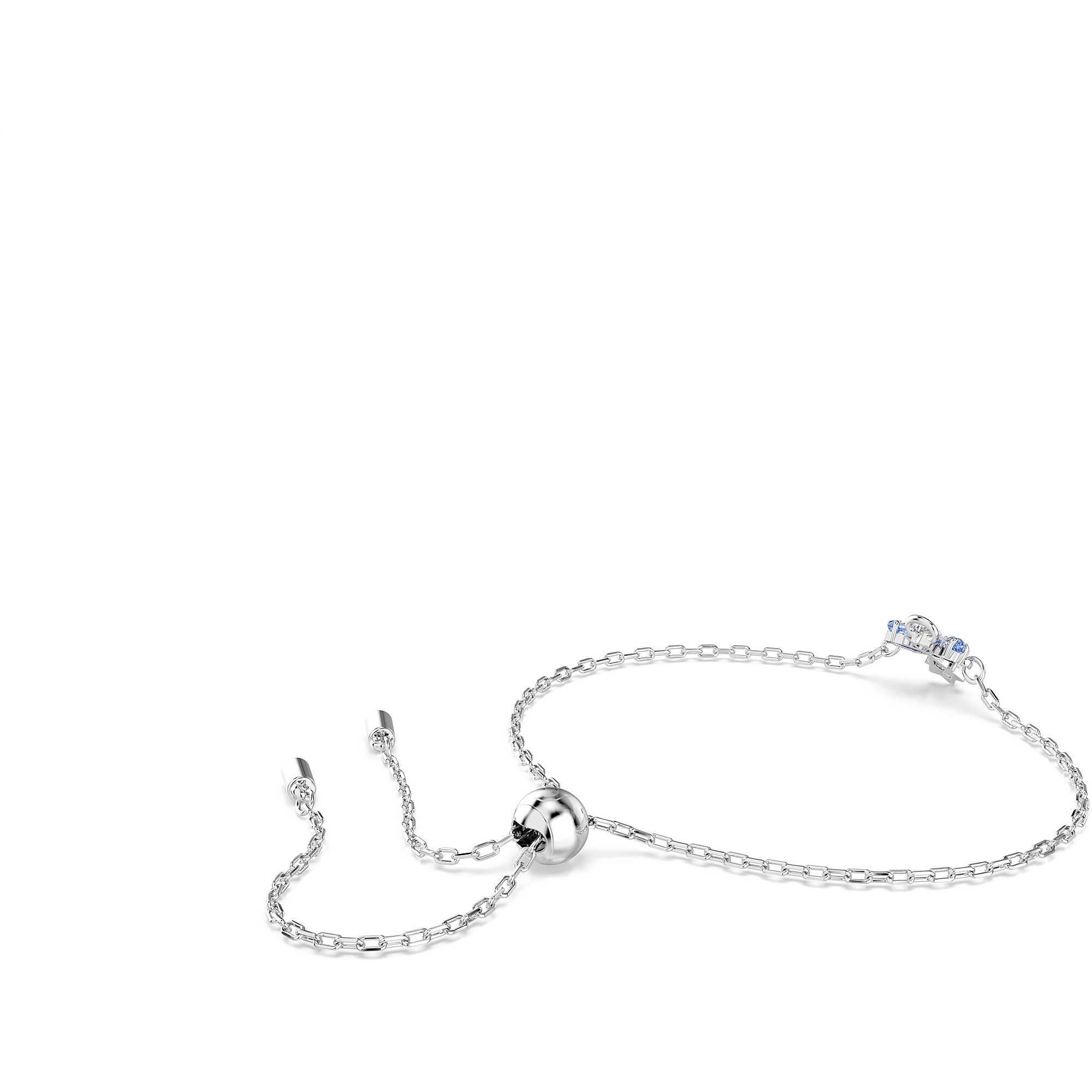 Pulsera Swarovski de la colección Magic con ángel azul y baño de rodio. Longitud máxima: 24 cm. Tamaño del adorno: 1.1 x 1 cm.