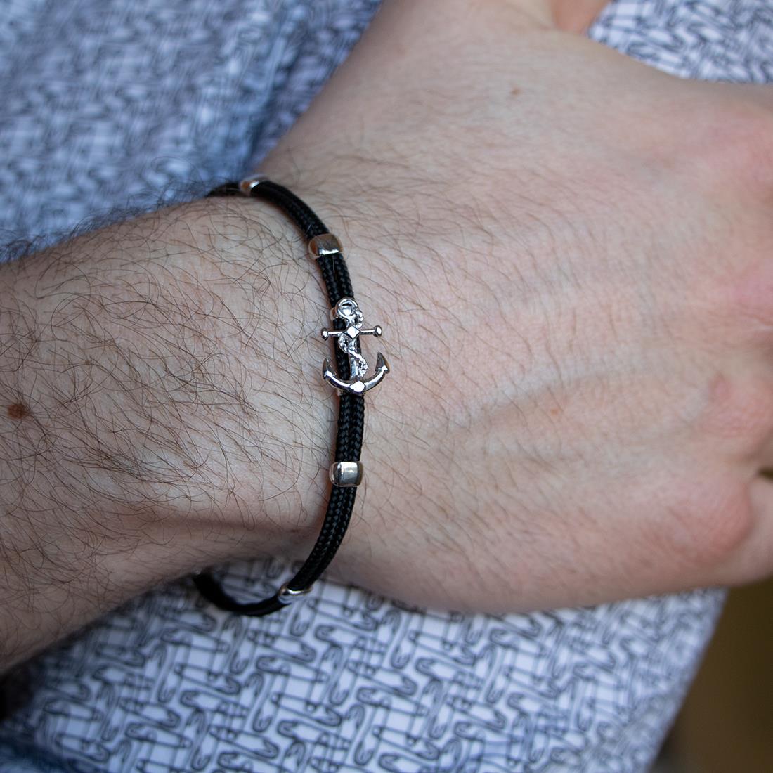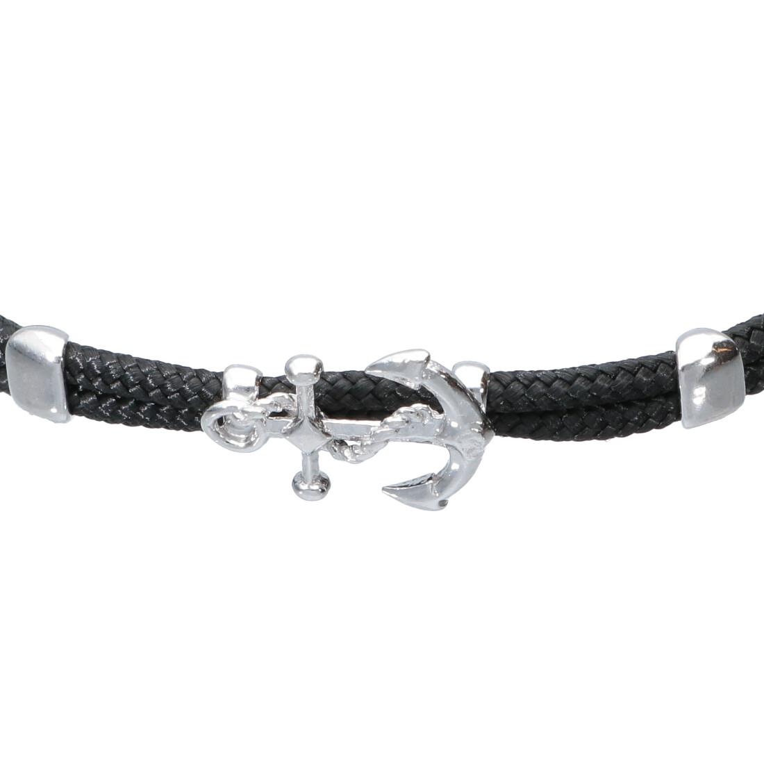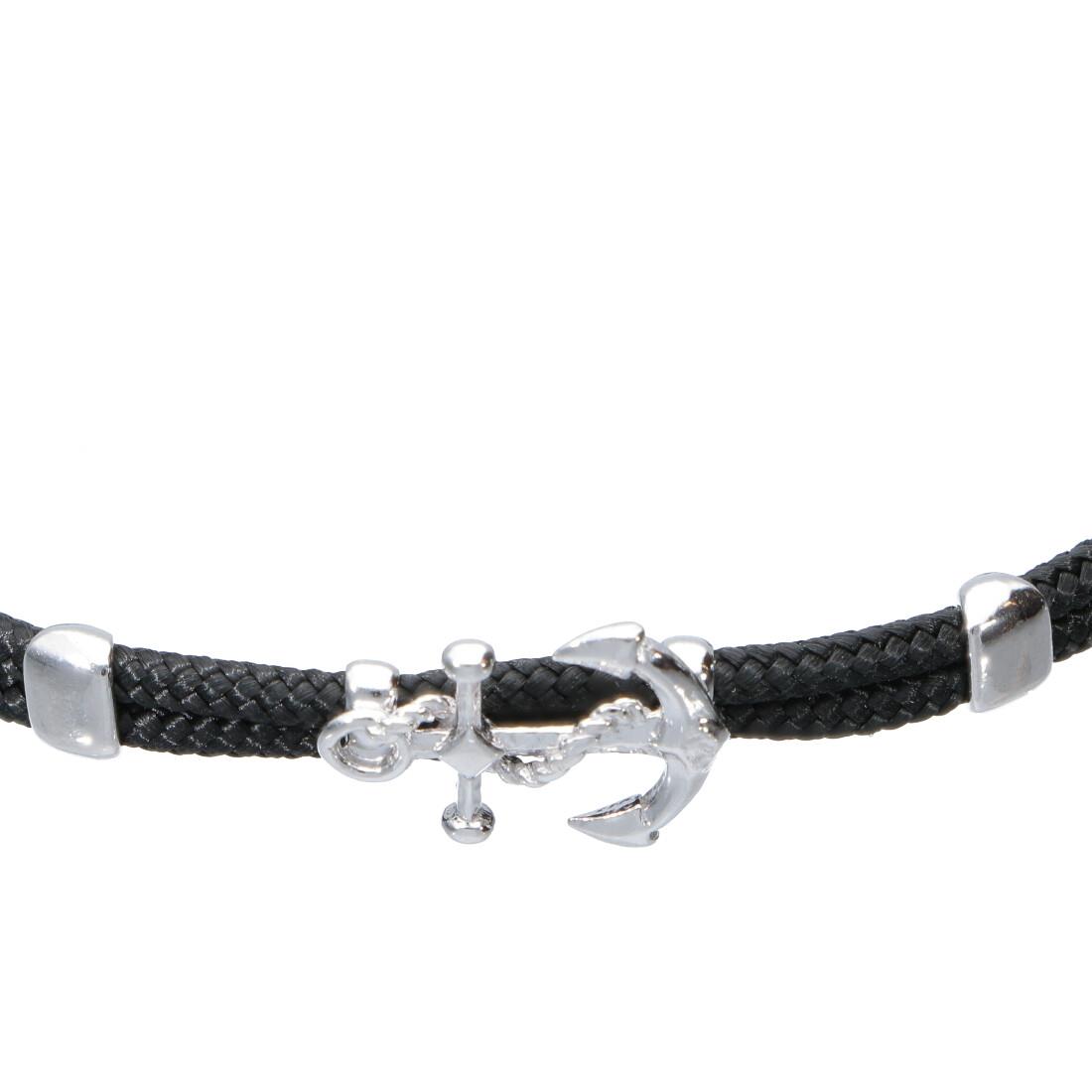 Pulsera de Oro&Co Man en plata y cordon negro . Longitud 18cm + 3cm