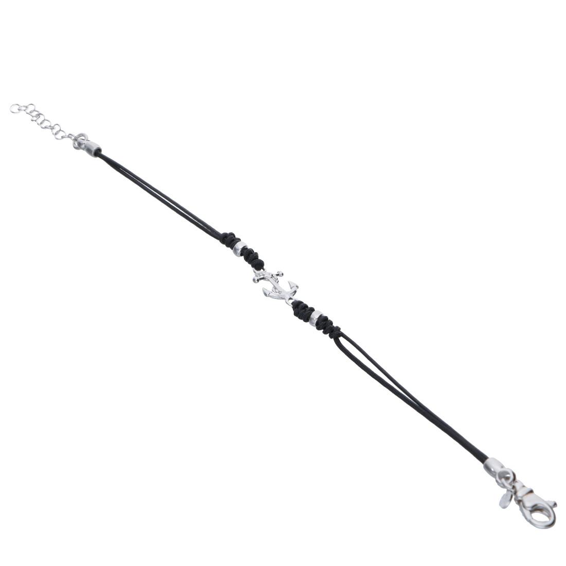 Pulsera de Oro&Co Man en plata y cordon negro con ancla . Longitud 17 cm + 3cm regulable