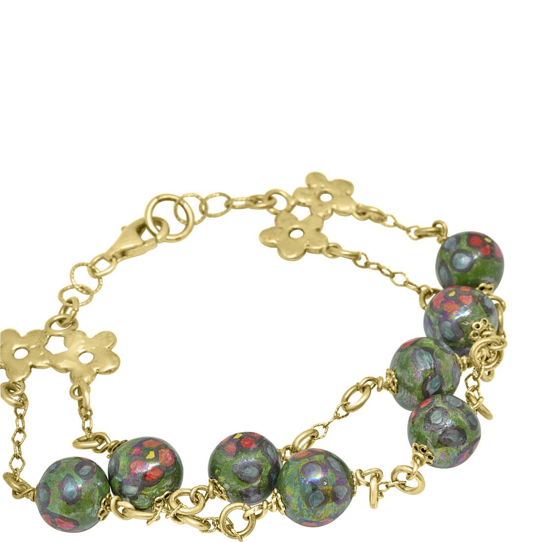 Pulsera en plata dorada  de cerámica verde y roja.  - LE PERLE DI CALTAGIRONE