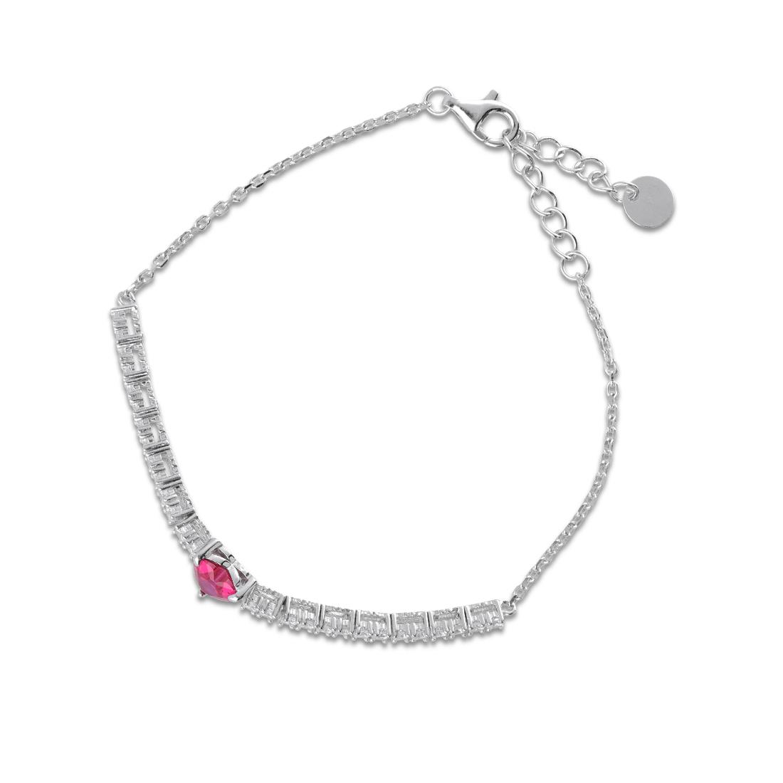 Pulsera tennis Oro&Co 925 de plata con piedra roja en forma de corazon. Ajustable desde 15 hasta 18 cm.