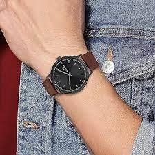 Reloj Tommy Hilfiger para hombre, caja de 43mm en acero negro, esfera negra con logo, correa de piel marrón. Resistente al agua hasta 3ATM.