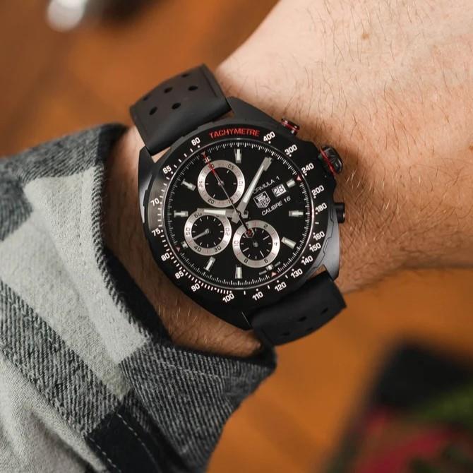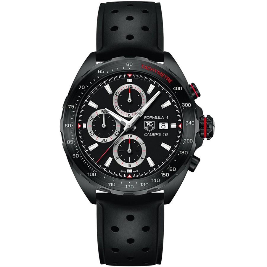 Reloj para hombre Tag Heuer Formula 1 Calibre 16 de acero negro, caja negra de 44 mm, esfera negra con detalles blancos, correa de caucho negra. Movimiento de cuarzo, cristal de zafiro. WR 20ATM