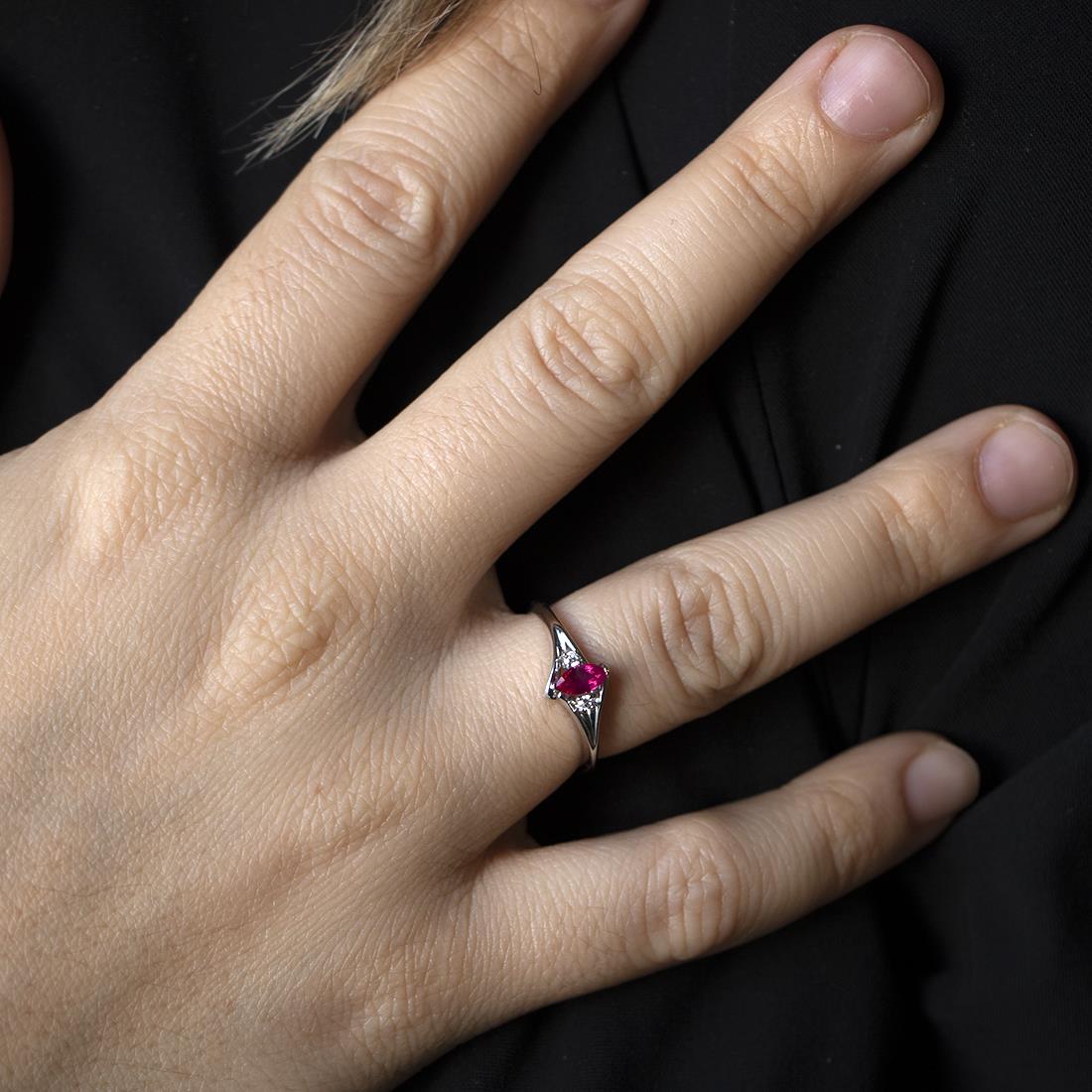 anillo en oro blanco con diamante y rubi - ORO&CO
