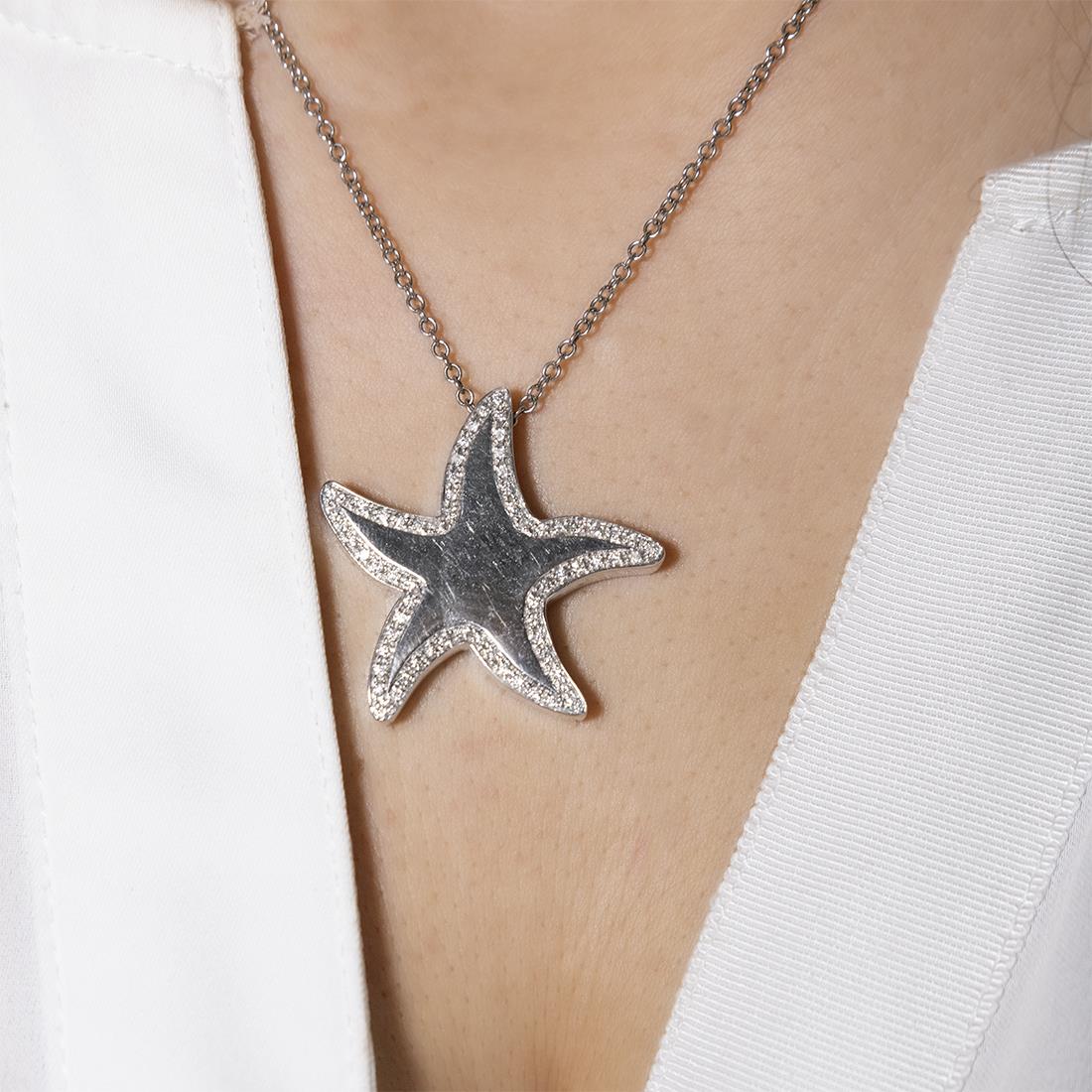 collar Oro & Co en oro blanco con diamante, forma de estrella. Longitud de 40 cm