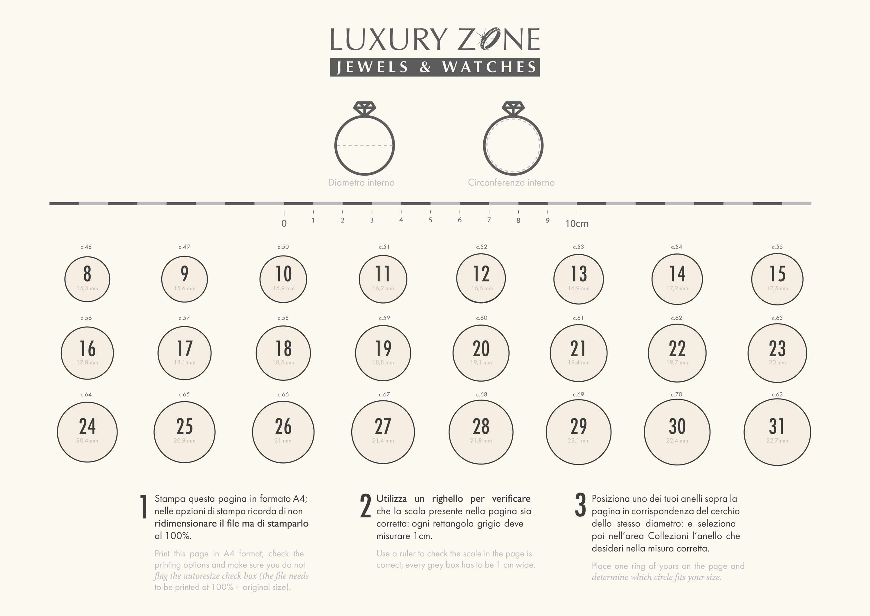 Ti garantiamo spedizioni sicure per l’acquisto dei tuoi preziosi. Il tuo ordine verrà recapitato all’indirizzo indicato in fase di acquisto e potrai, in ogni momento, tracciarlo, utilizzando il codice che ti verrà recapitato tramite mail dal negozio che si prenderà cura della tua spedizione. Ad ogni pacco spedito è abbinato un numero di sigillo, che troverete stampato sulla busta del corriere, e dovrà corrispondere a quanto vi sarà stato indicato tramite mail. Le consegne vengono effettuate da lunedì a venerdì (escluse le festività nazional) dalle 9.00 alle 18.00. In caso di assenza del destinatario, al momento della consegna richiederemo un secondo passaggio del corriere entro 3 giorni. In caso di ulteriore assenza del destinatario, il pacco verrà riconsegnato al negozio Luxury Zone dal quale è partito e l’ordine verrà considerato annullato.