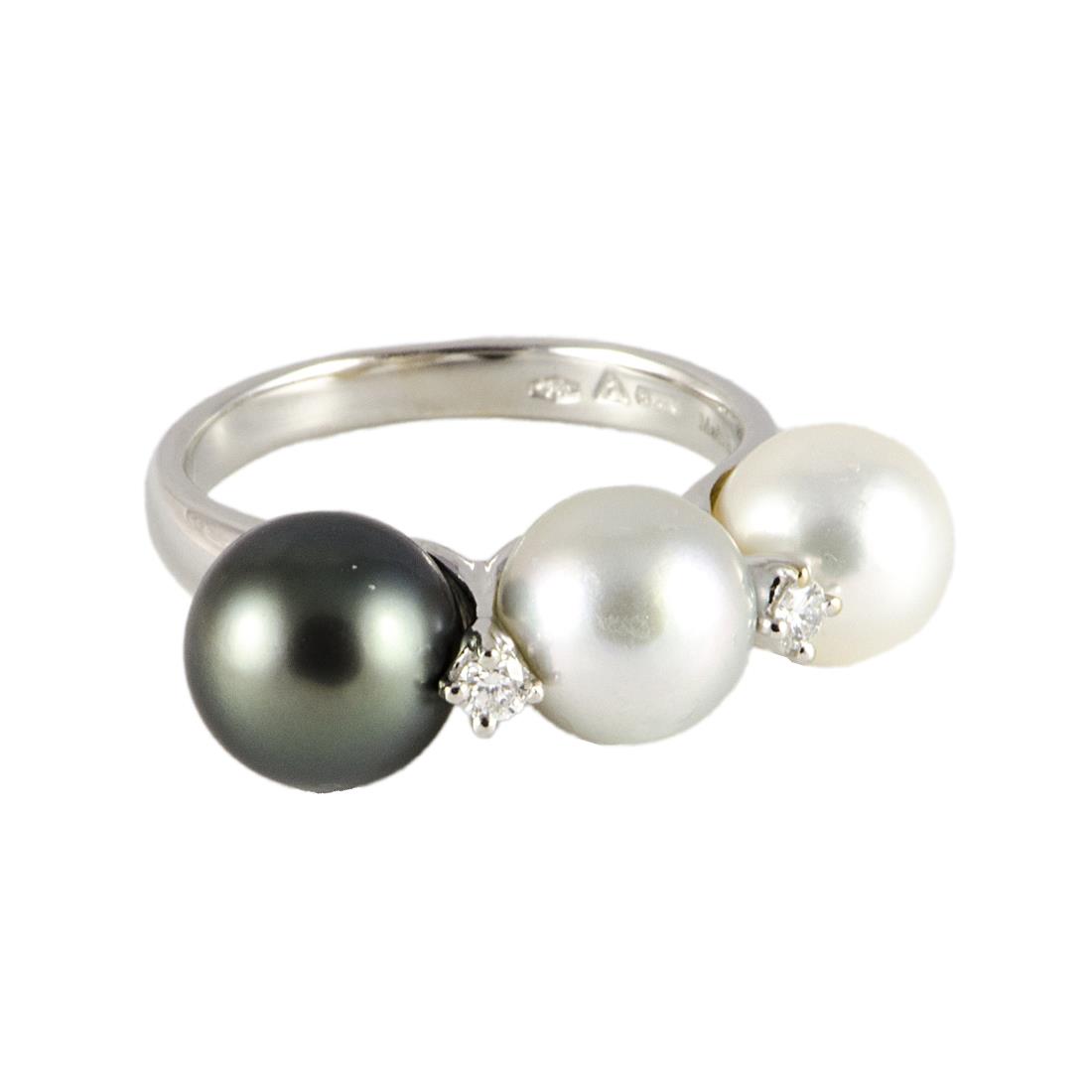 ANELLO IN ORO BIANCO CON DIAMANTI E PERLE