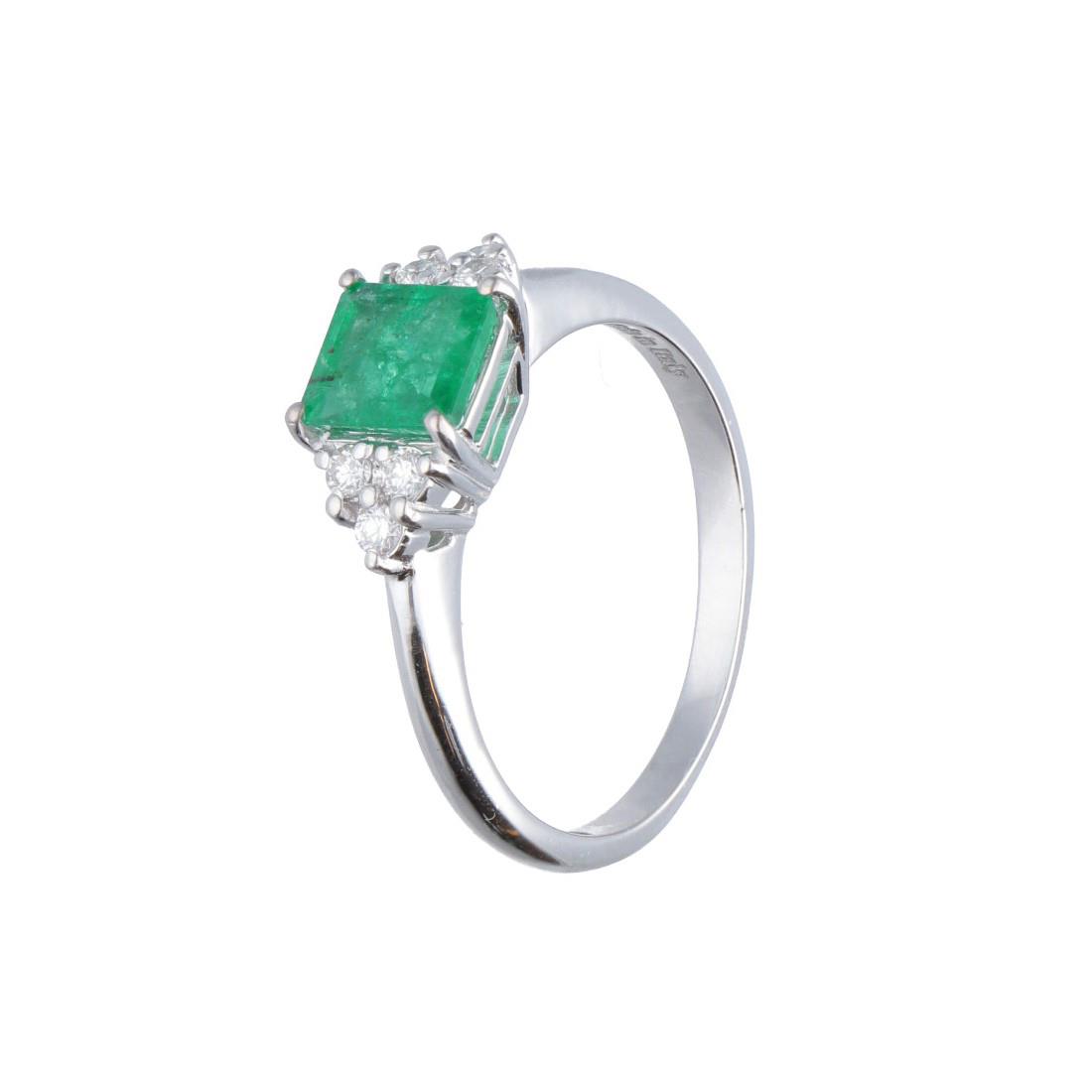 ANELLO IN ORO BIANCO CON DIAMANTI E SMERALDO CT 0.80
