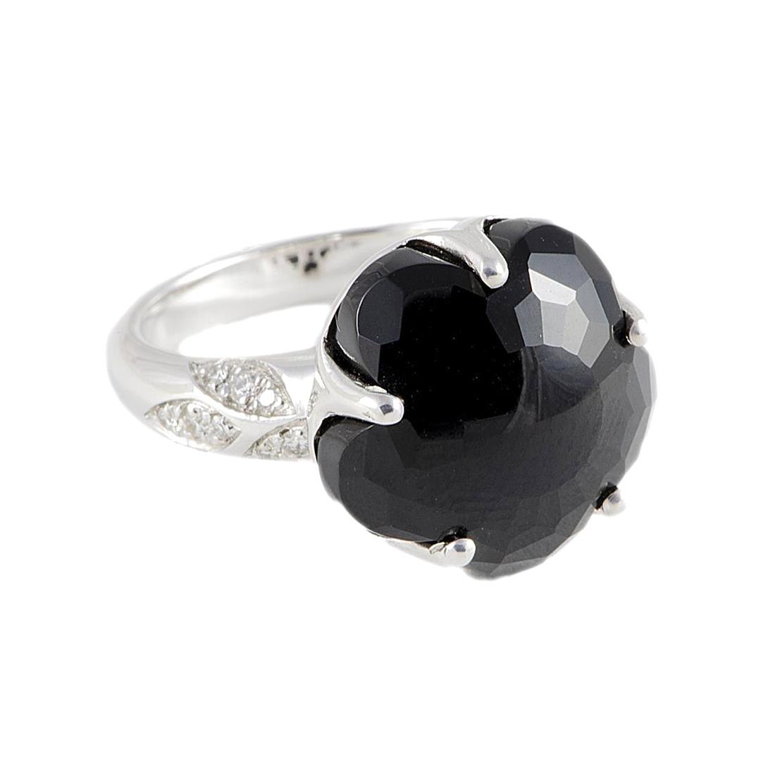 Anello Pasquale Bruni in oro bianco con diamanti 0,21 carati e pietra nera misura 15