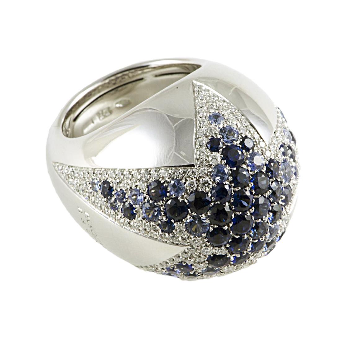Anello Pasquale Bruni in oro bianco con stella in zaffiri 3,50 carati e diamanti 1,04 carati misura 15