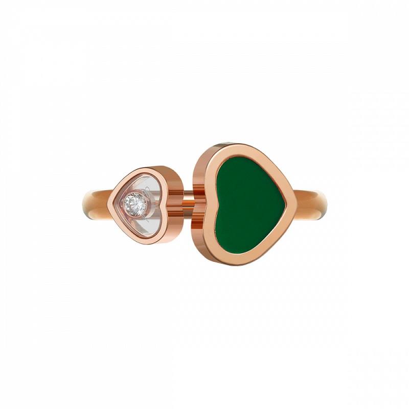 Anello Happy Hearts in oro rosa, agata verde e diamante - CHOPARD