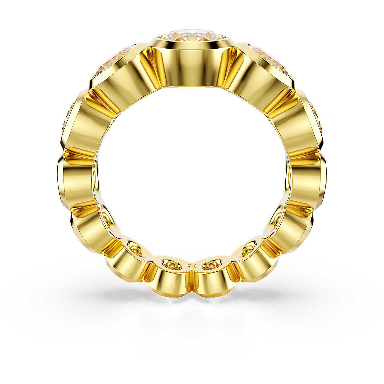 Anello da donna di Swarovski della collezione Imber. Ideale per lo styling da mattina a sera, questo anello Imber è sorprendente a qualsiasi ora. La fascia placcata in tonalità oro è magistralmente realizzata con un cerchio completo di Swarovski Zirconia taglio Round, ciascuna incastonata in una moderna montatura a castone. La sfumatura di diverse dimensioni produce un effetto accattivante, insieme a un tripudio di luce da qualsiasi angolazione. Indossa questo anello con un paio di orecchini coordinati e lascia risplendere la tua raffinatezza. Misura: 15. La referenza è 5705477