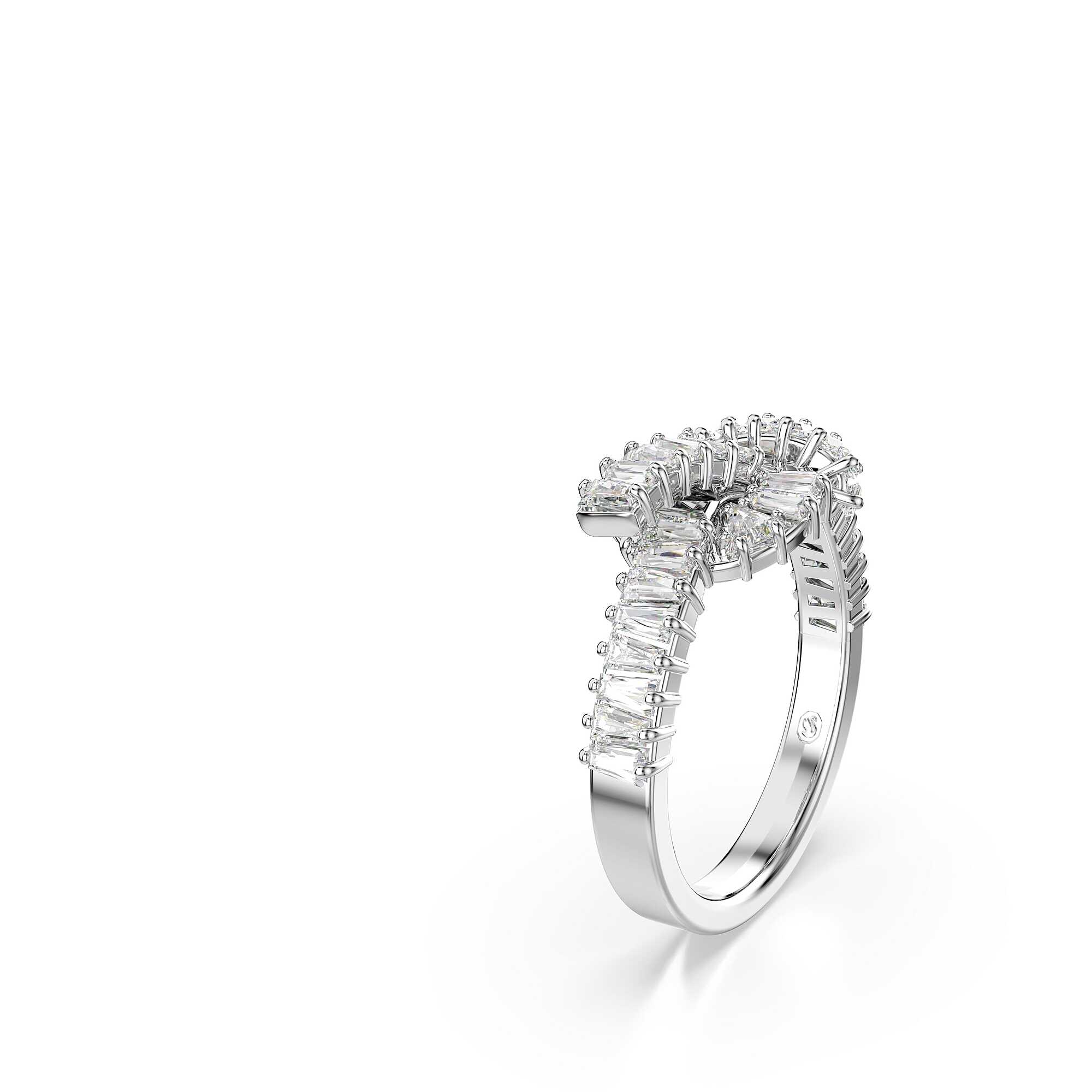 Anello di Swarovski da donna della collezione Matrix. Anello bianco Nodo con Swarovski a taglio baguette di colore bianco. Dona al tuo stile un tocco di luce con questo elegante anello Matrix. Realizzato con un nodo a forma di nastro, il design placcato rodio presenta una sofisticata decorazione di Swarovski Zirconia taglio baguette, ciascuna incastonata in una montatura a griffe. Moderno e artistico, questo anello si abbina perfettamente ad altri gioielli della stessa famiglia. Misura: 12