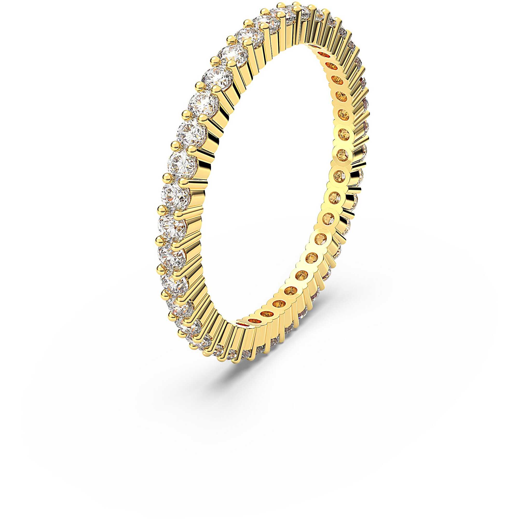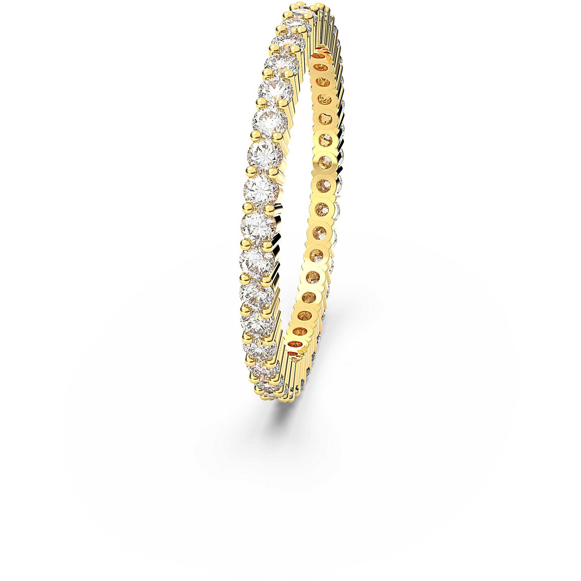 Anello Swarovski Vittore, Taglio tondo, Bianco, Placcato oro. Misura 50 - EU 10. Questo anello Vittore è l’ideale per un lieve tocco di glitter. Combina il classico abbinamento di pietre rotonde trasparenti con placcatura color oro per un look raffinato e lussuoso. Pensato per risplendere su ogni lato, puoi abbinarlo ad altri gioielli di stile diverso, come un affascinante anello cocktail per un contrasto sorprendente. La referenza è 5656293.