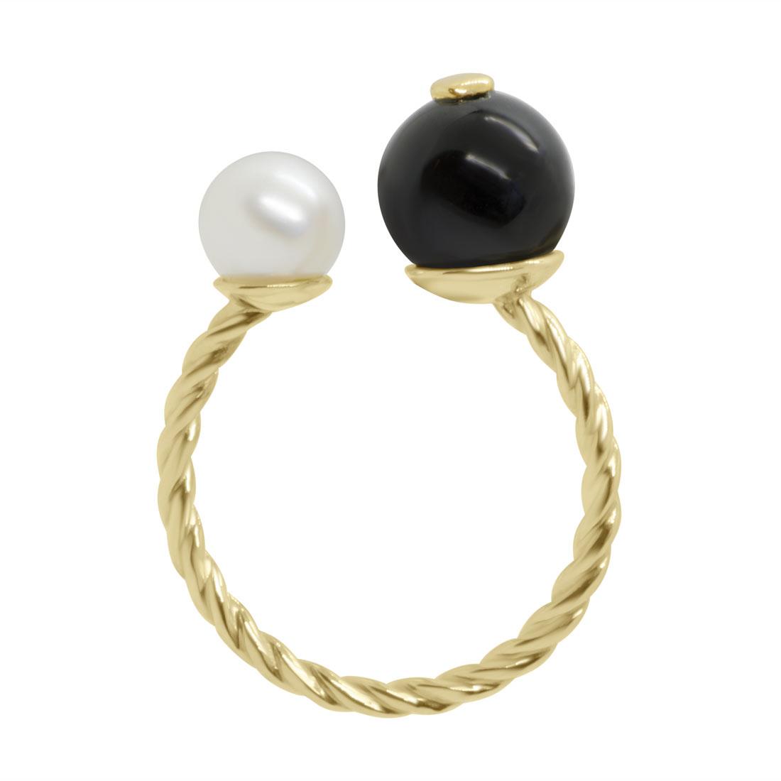 Anello Oro&Co aperto in oro giallo con perla e agata nera, misura 13