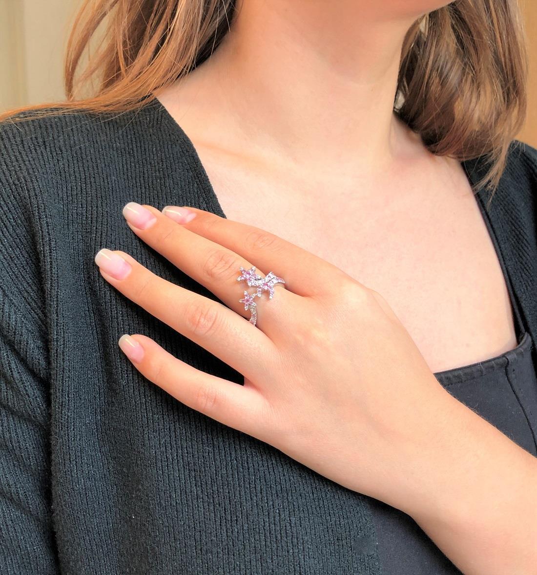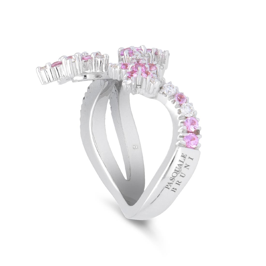 Anello Pasquale Bruni collezione Luna Stella incanto in oro bianco con zaffiri rosa ct. 1.12 e diamanti ct. 0.3. Misura 16