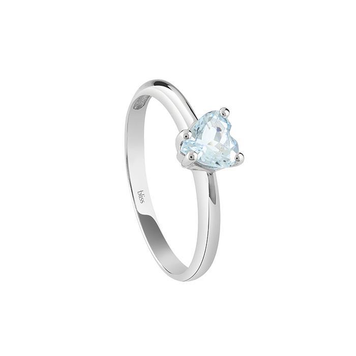 Anello Bliss in oro bianco con acquamarina ct 0,50 taglio cuore. Misura 13