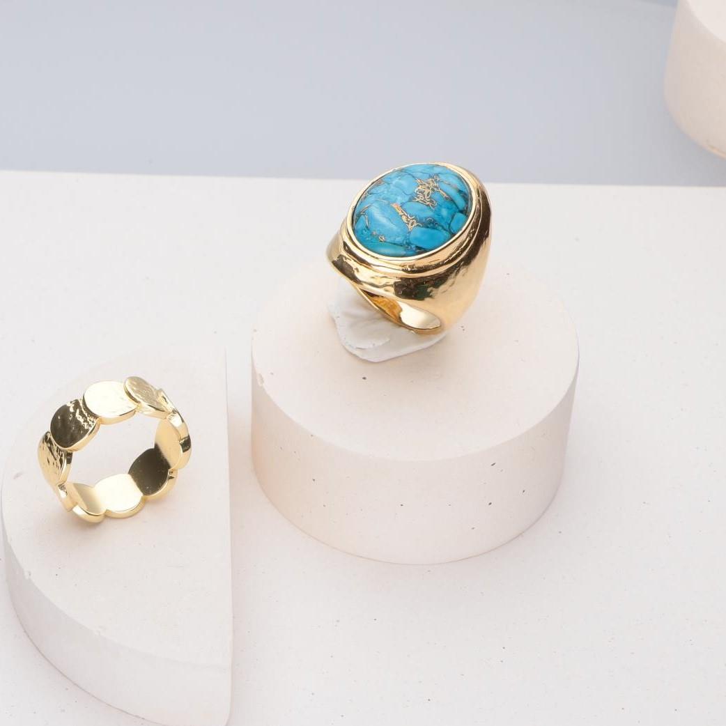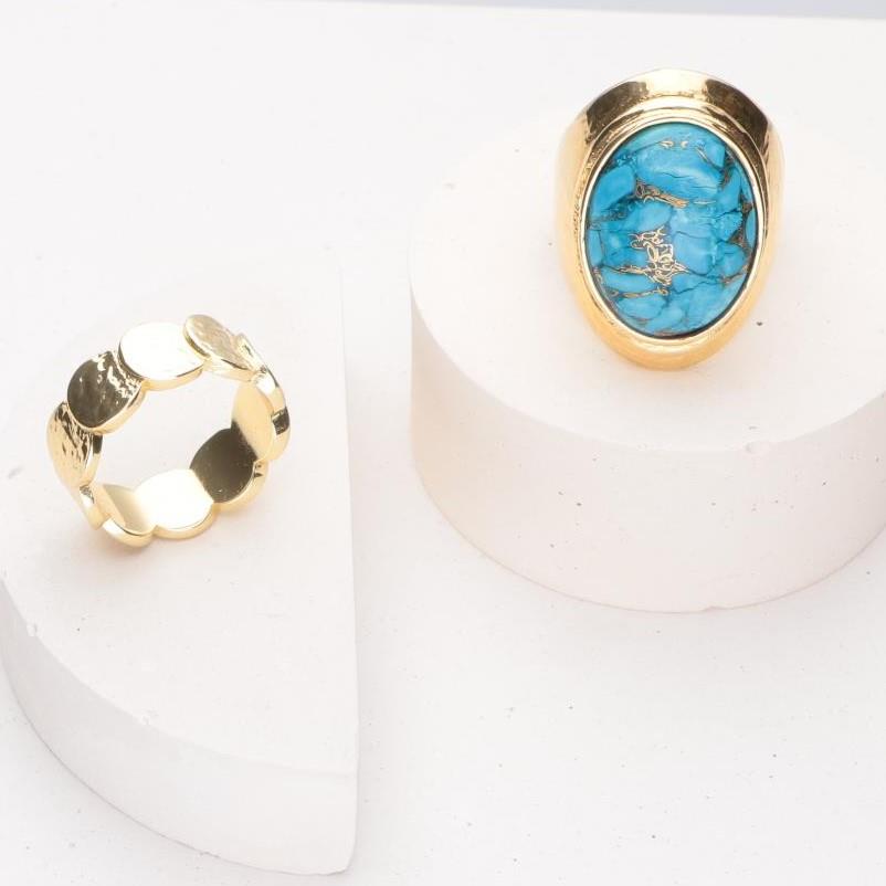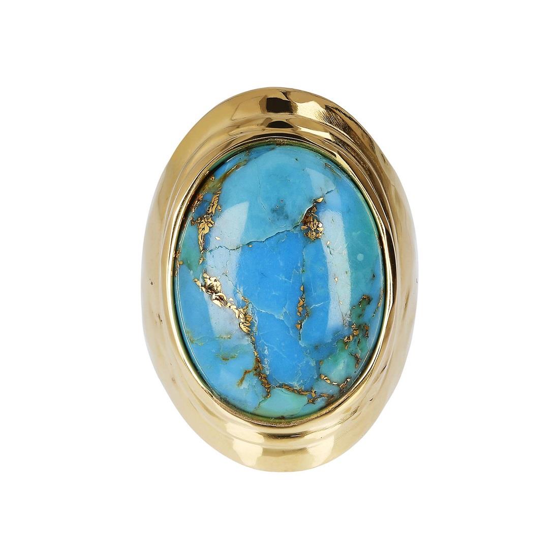 Anello Etrusca placcato in oro giallo 18kt con turchese cabochon ovale.