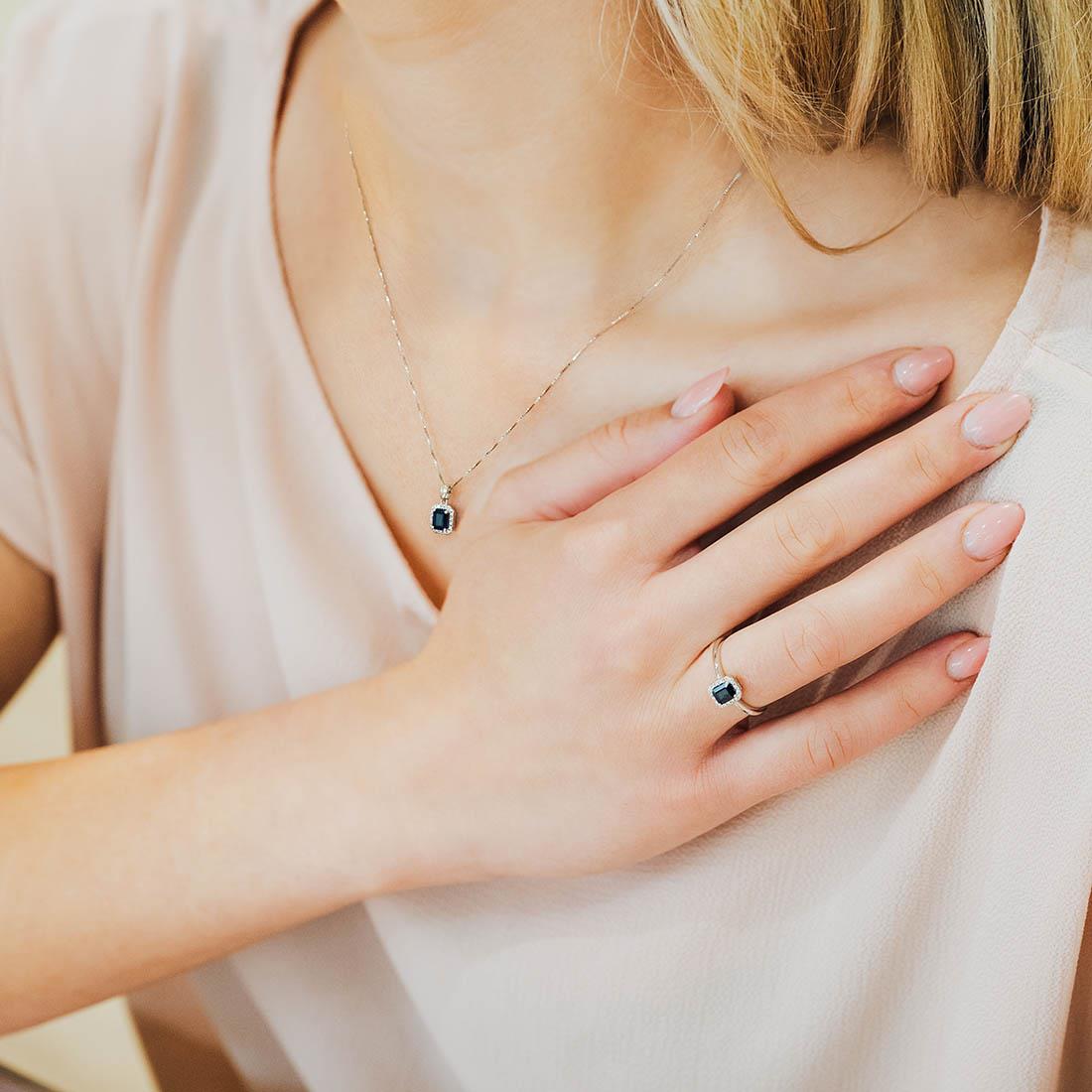 Anello contornato con zaffiro e diamanti - LUXURY MILANO