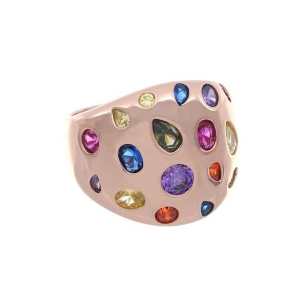 Anello design in argento rosato zirconi colorati - CUORI MILANO