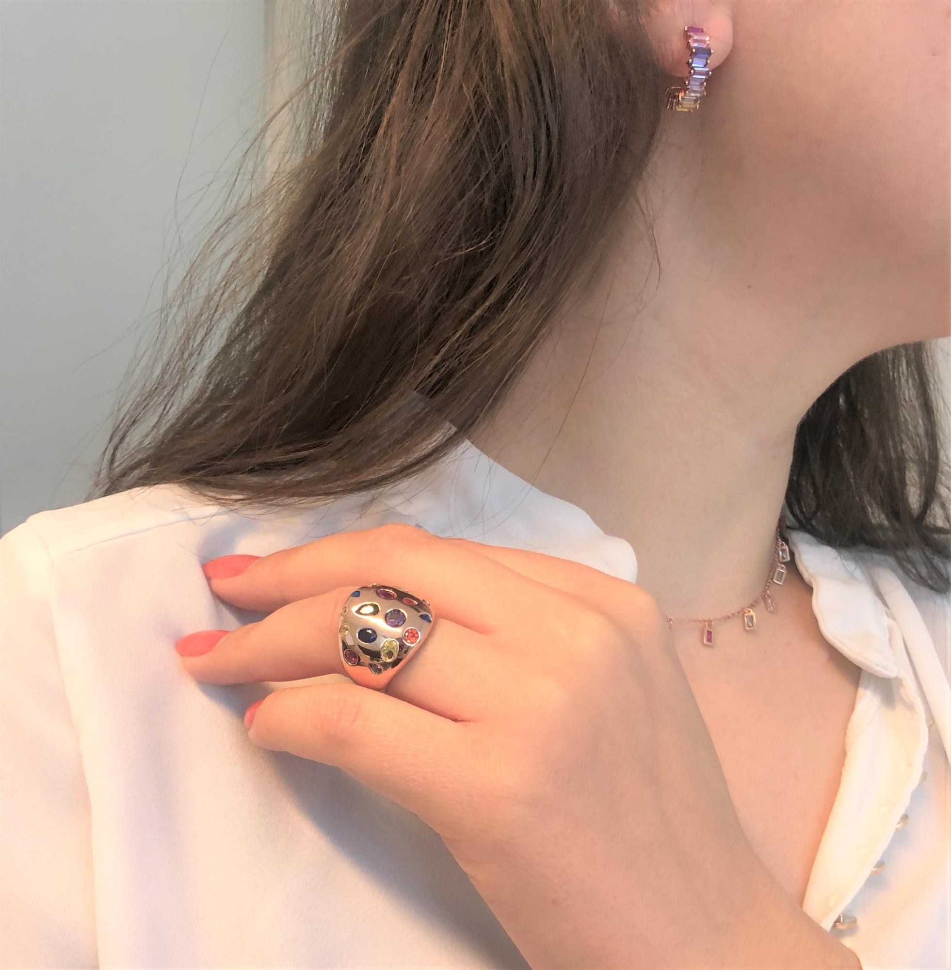 Anello design in argento rosato zirconi colorati