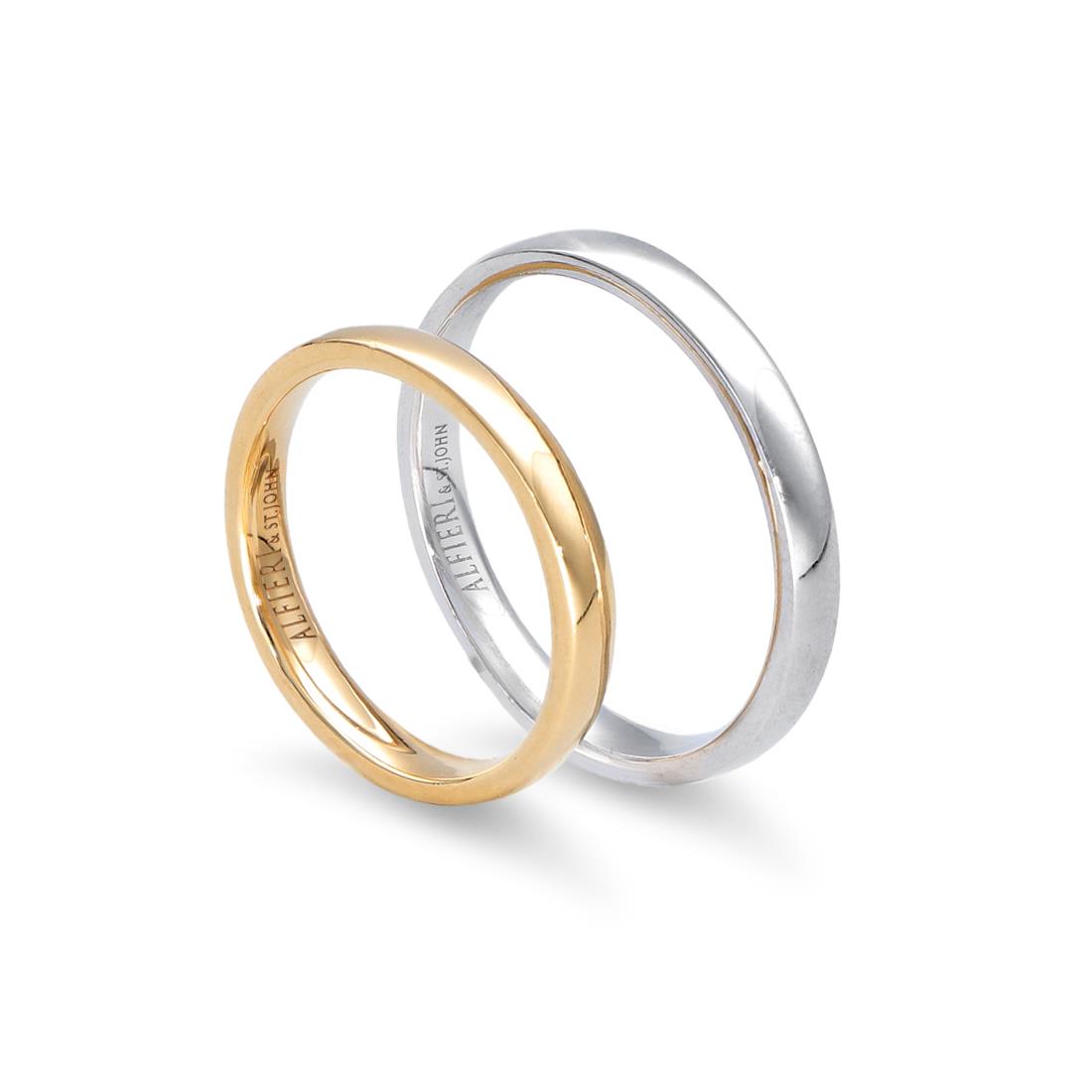 Anello fede Alfieri & St. John disponibile in oro giallo, rosa e bianco. Modello confort arrotondata esternamente. Altezza 2.50 mm