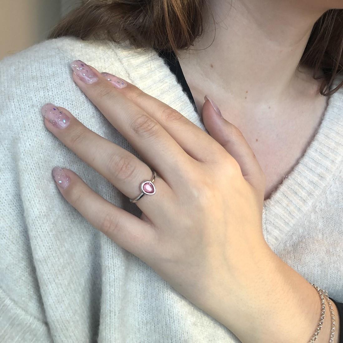 Anello Oro&Co 925 in argento con pietra rosa a forma di goccia. Misura: 12.5.