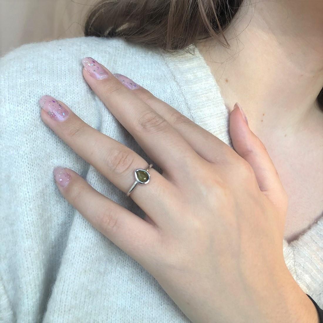 Anello Oro&Co 925 in argento con pietra a forma di goccia verde. Misura: 14.