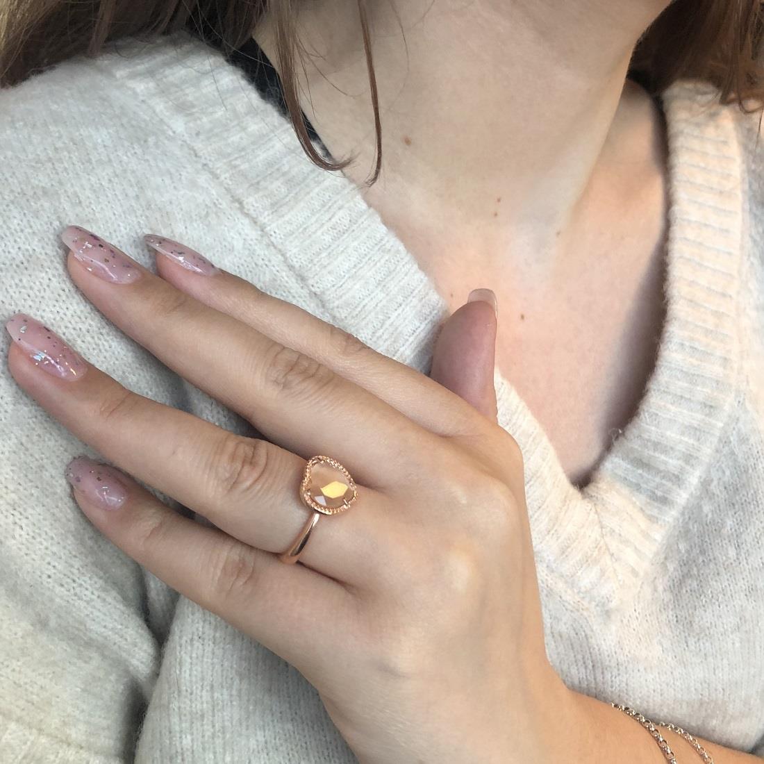 Anello in argento rosato a forma di cuore con pietra  - ORO&CO 925