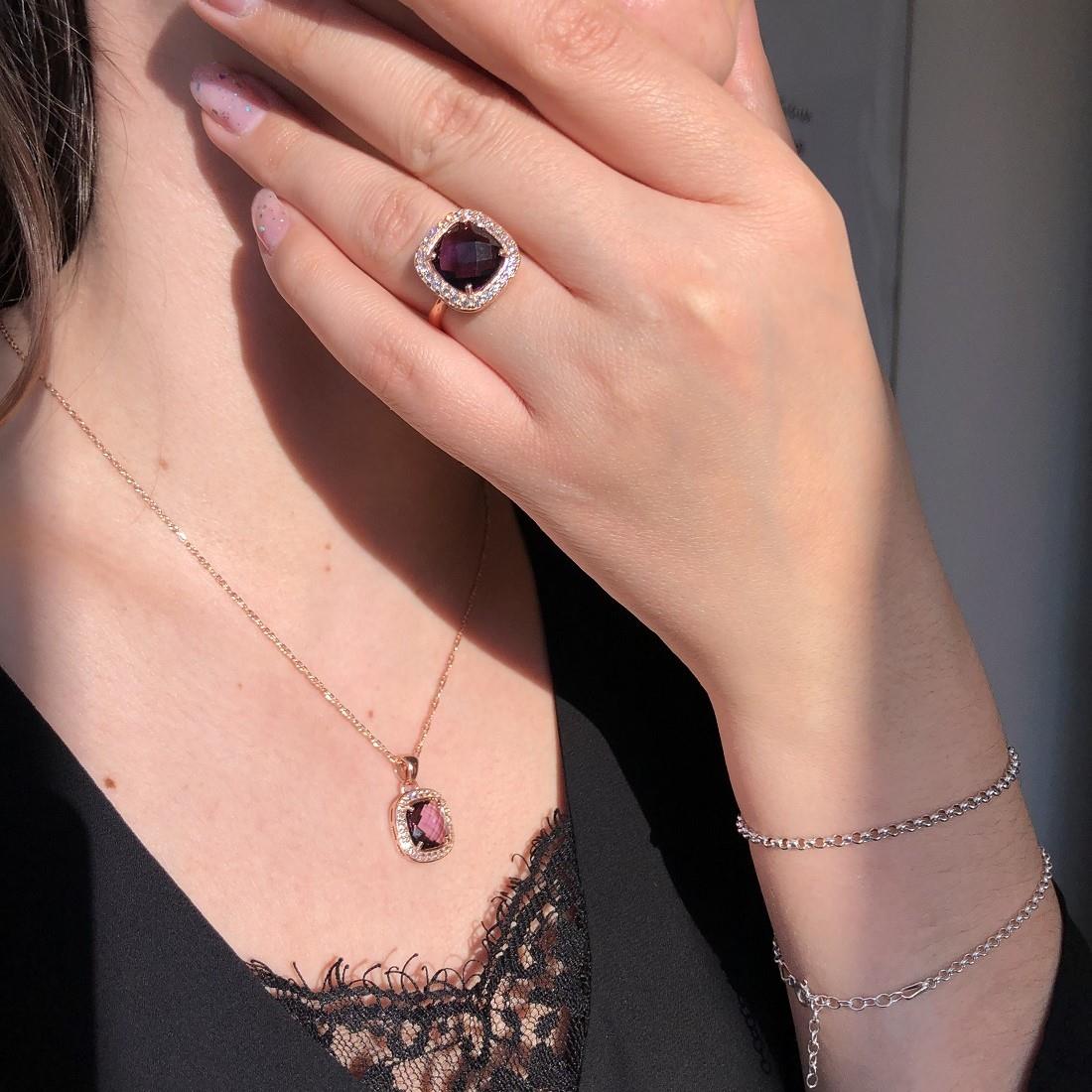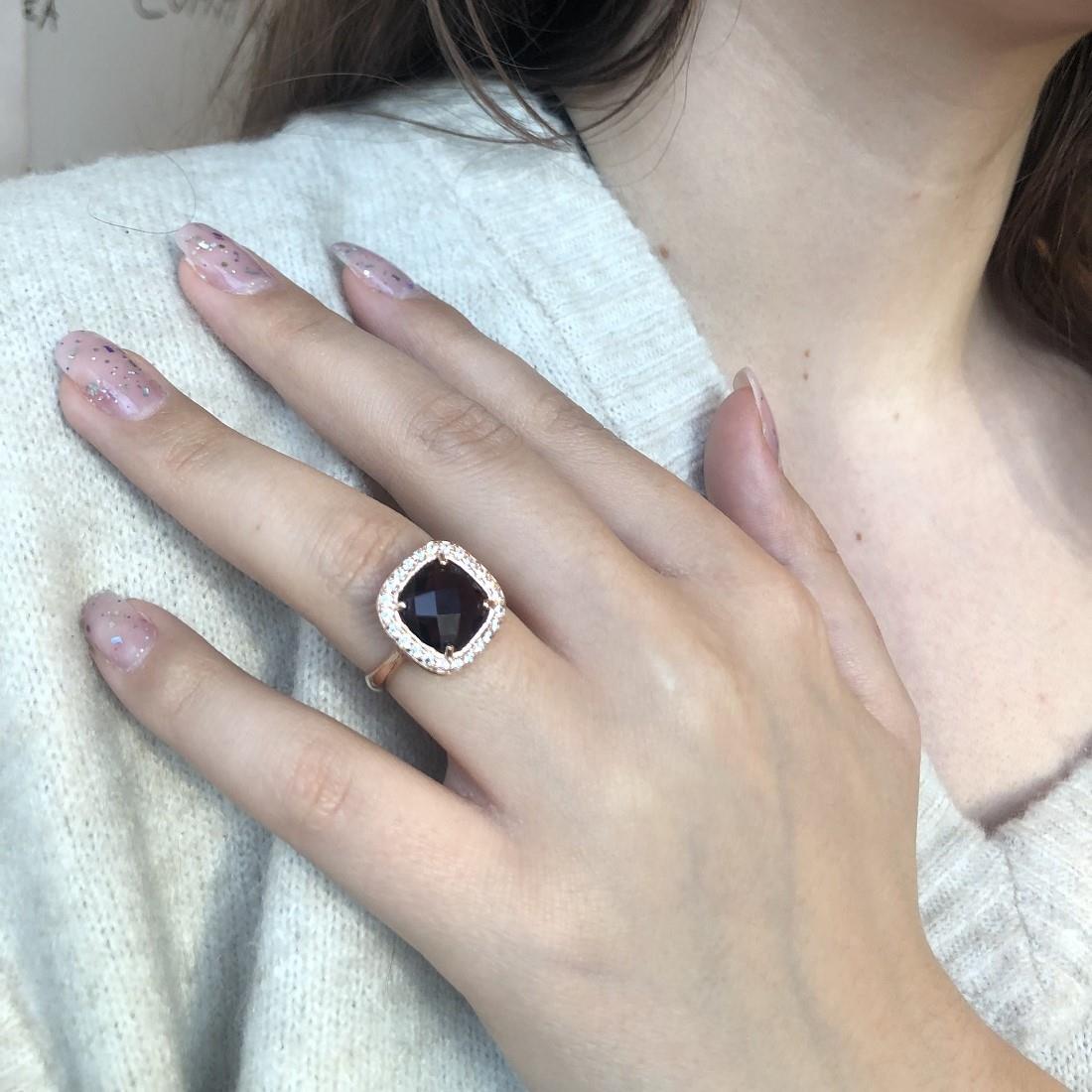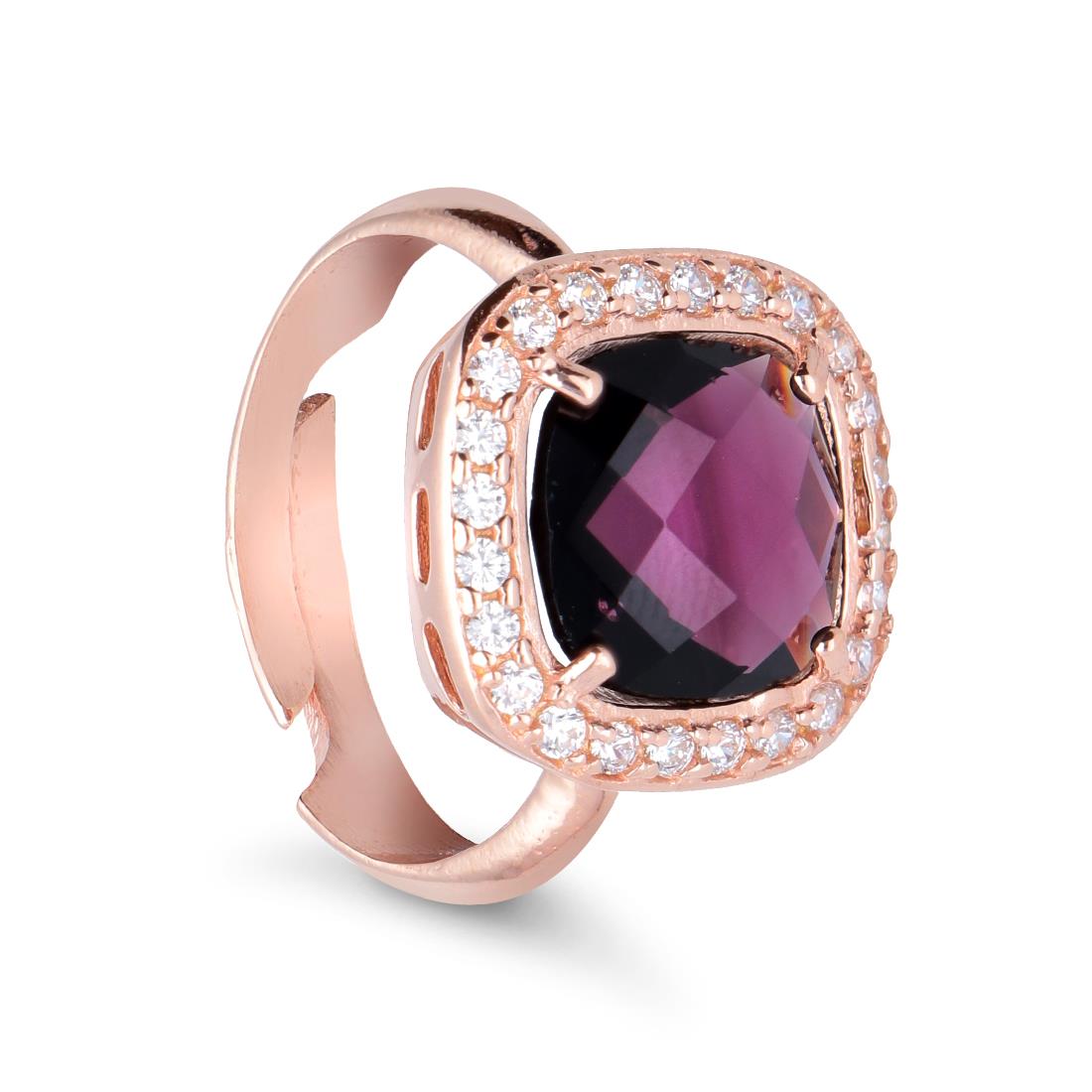 Anello Oro&Co 925 in argento rosegold con pietra quadrata viola e zirconi bianchi. Misura a partire dalla taglia:14.