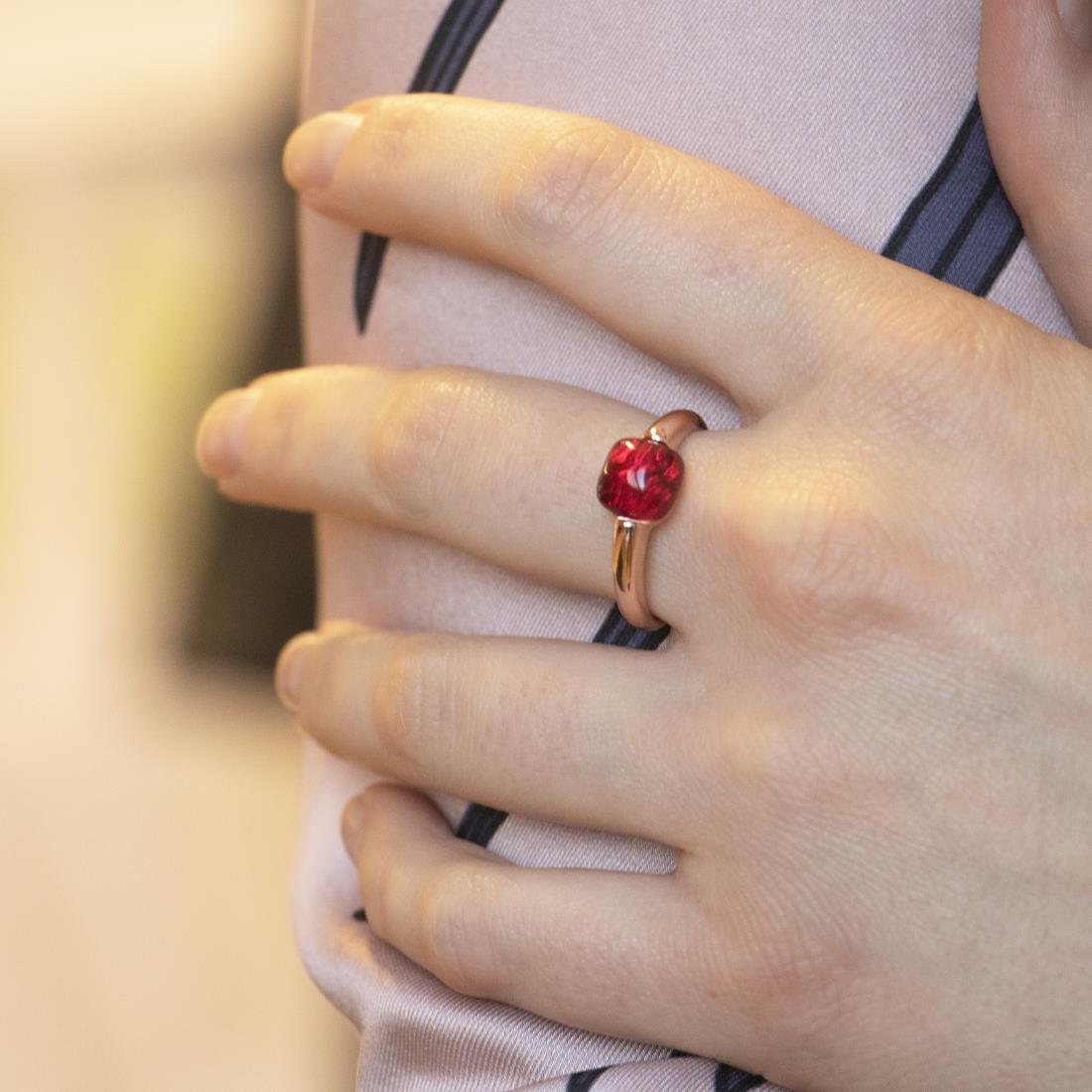 Anello Oro&Co 925 in argento rosato con pietra rossa. Misure disponibili: 14/16.5/18.