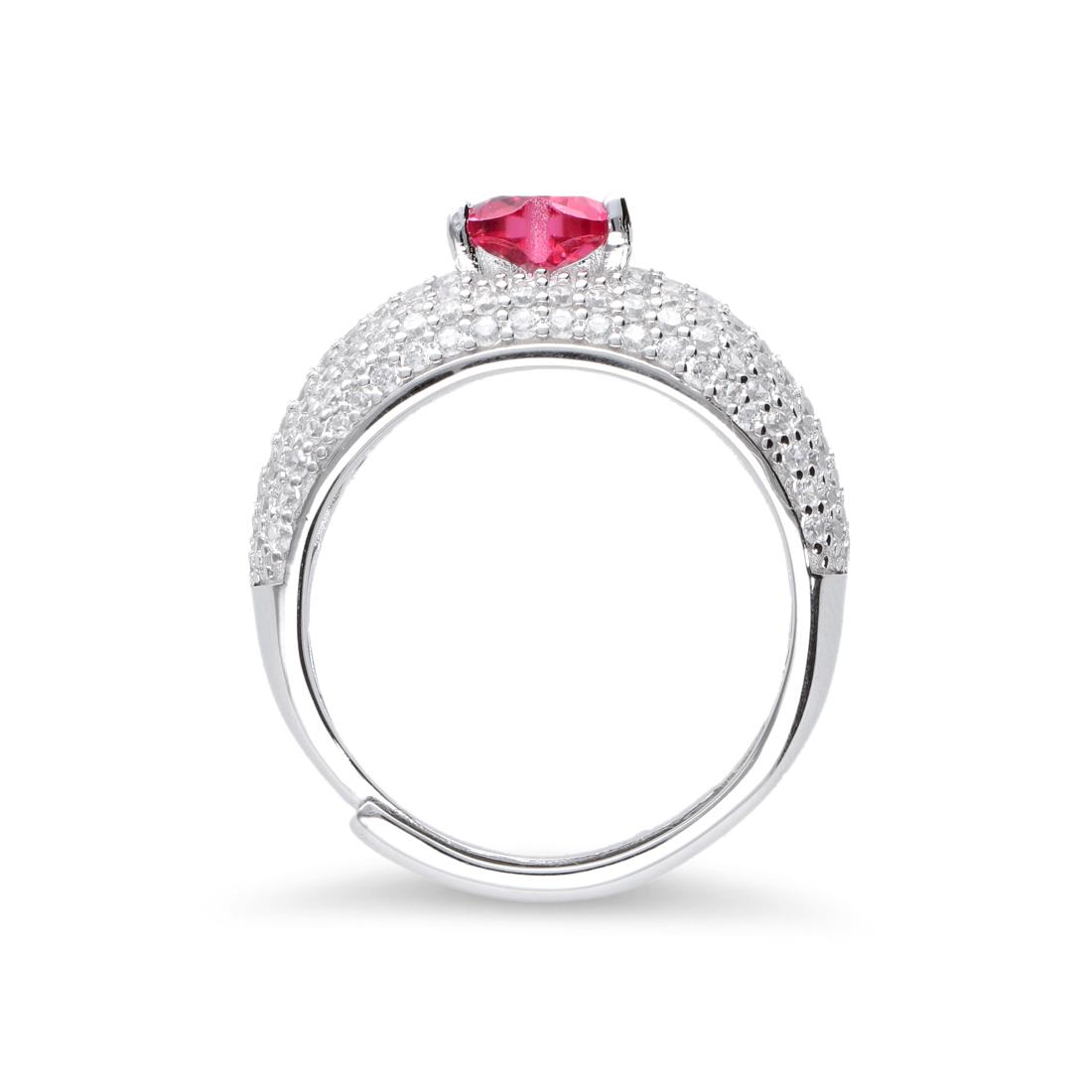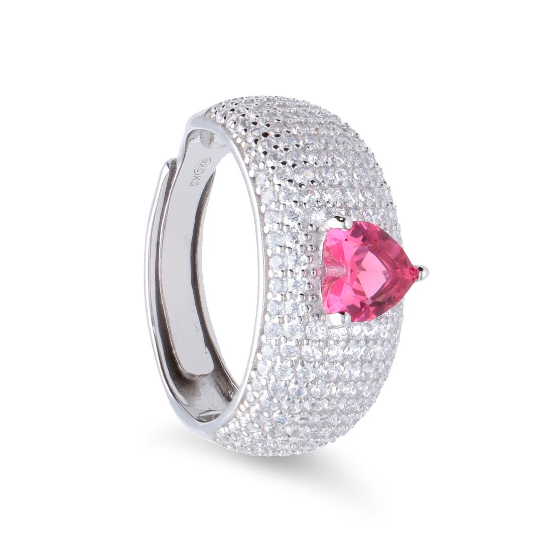 Anello Oro&Co925 in argento rosato con pavè di zirconi bianchi e pietra centrale rossa a forma di cuore. Multimisura