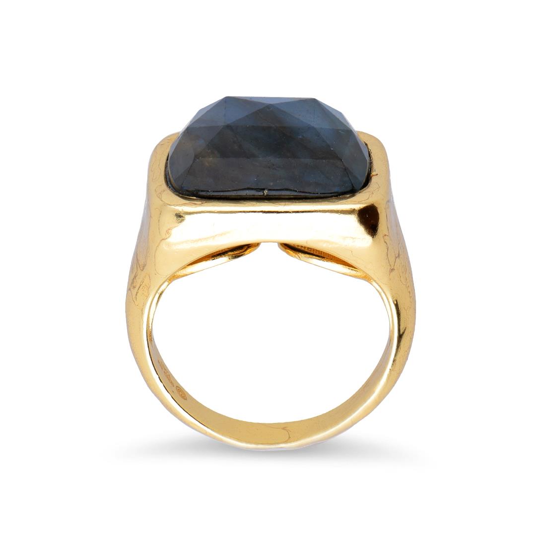 Anello Toscana by Etrusca in bronzo placcato oro ct. 18 con pietra blu. Taglia: 14.