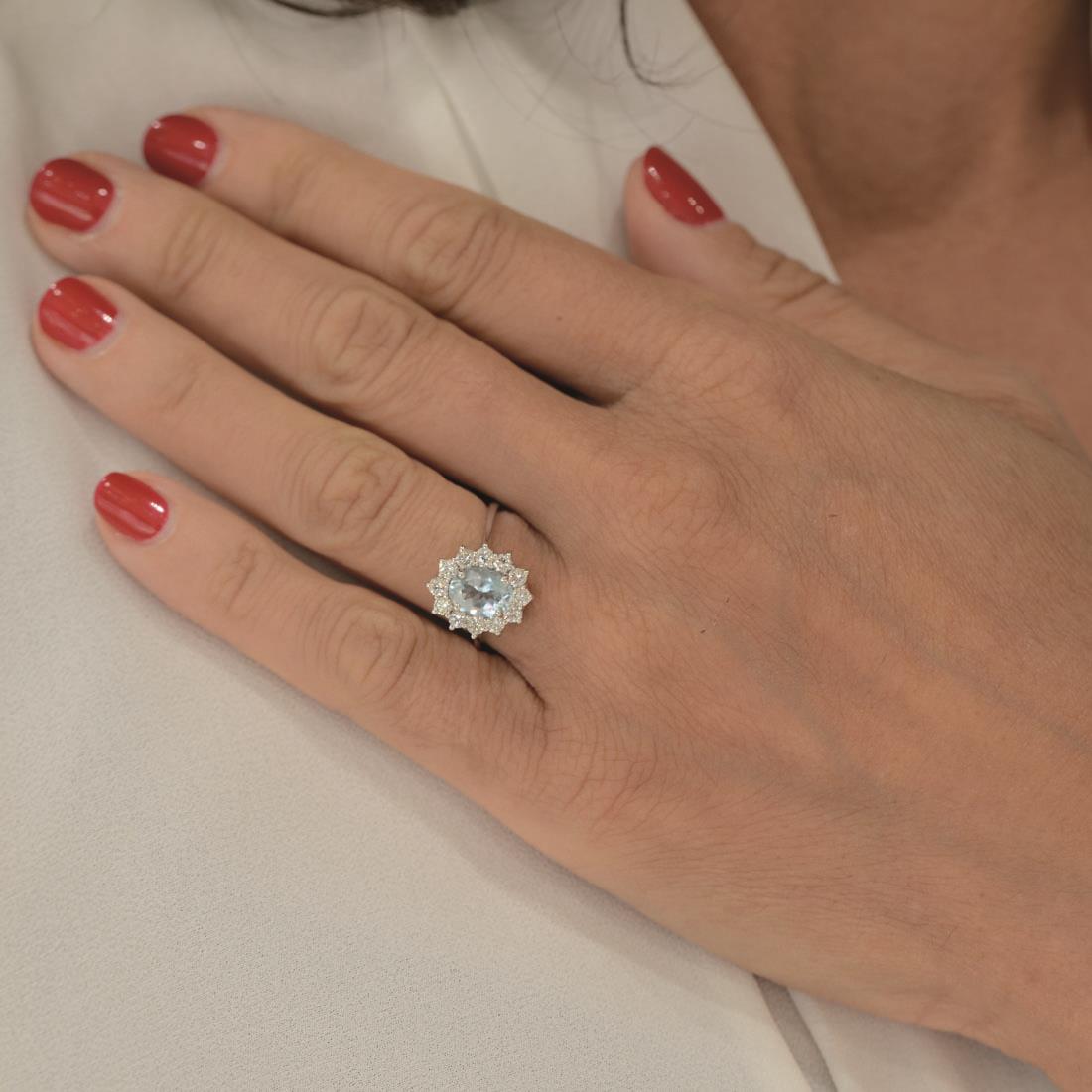 Anello in oro bianco con acquamarina e diamanti - ALFIERI & ST. JOHN