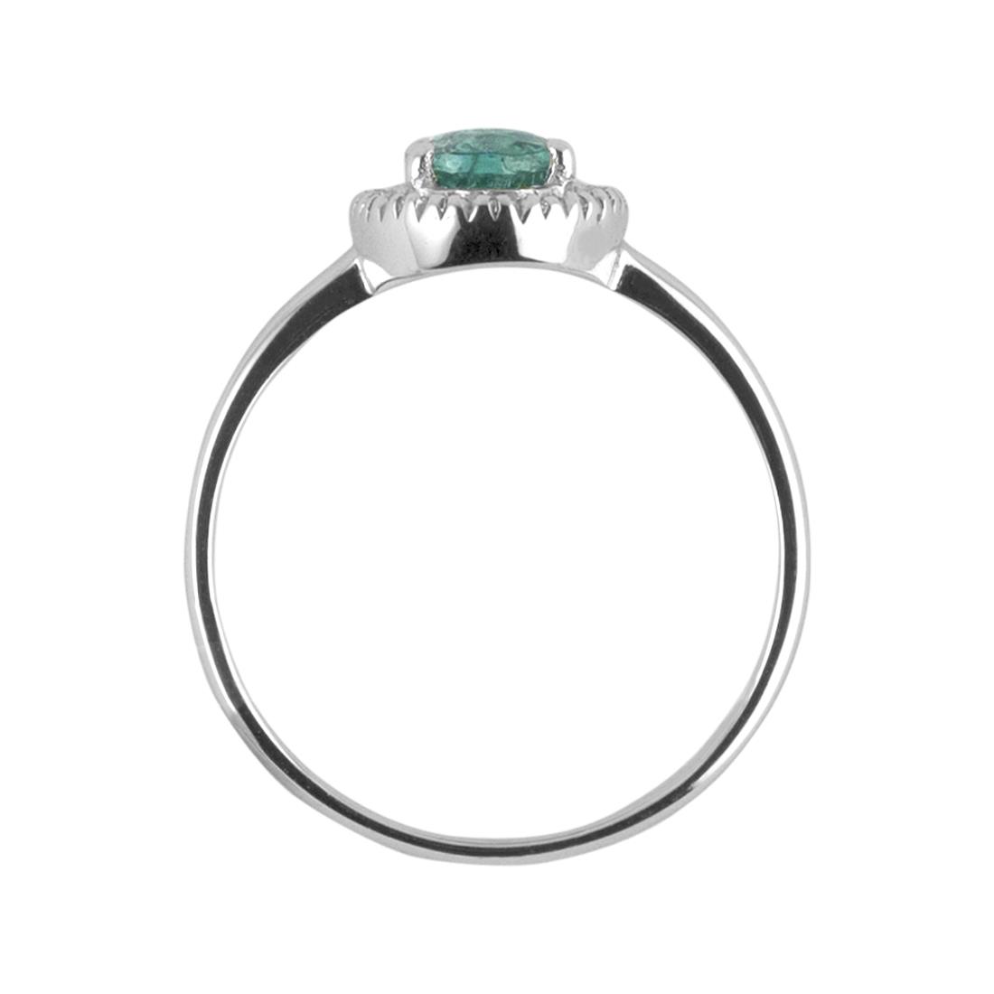 Anello Alfieri & St John in oro bianco con diamanti ct. 0,15 colore G purezza SI e smeraldo ct. 0,75 taglio ovale. Misura 13
