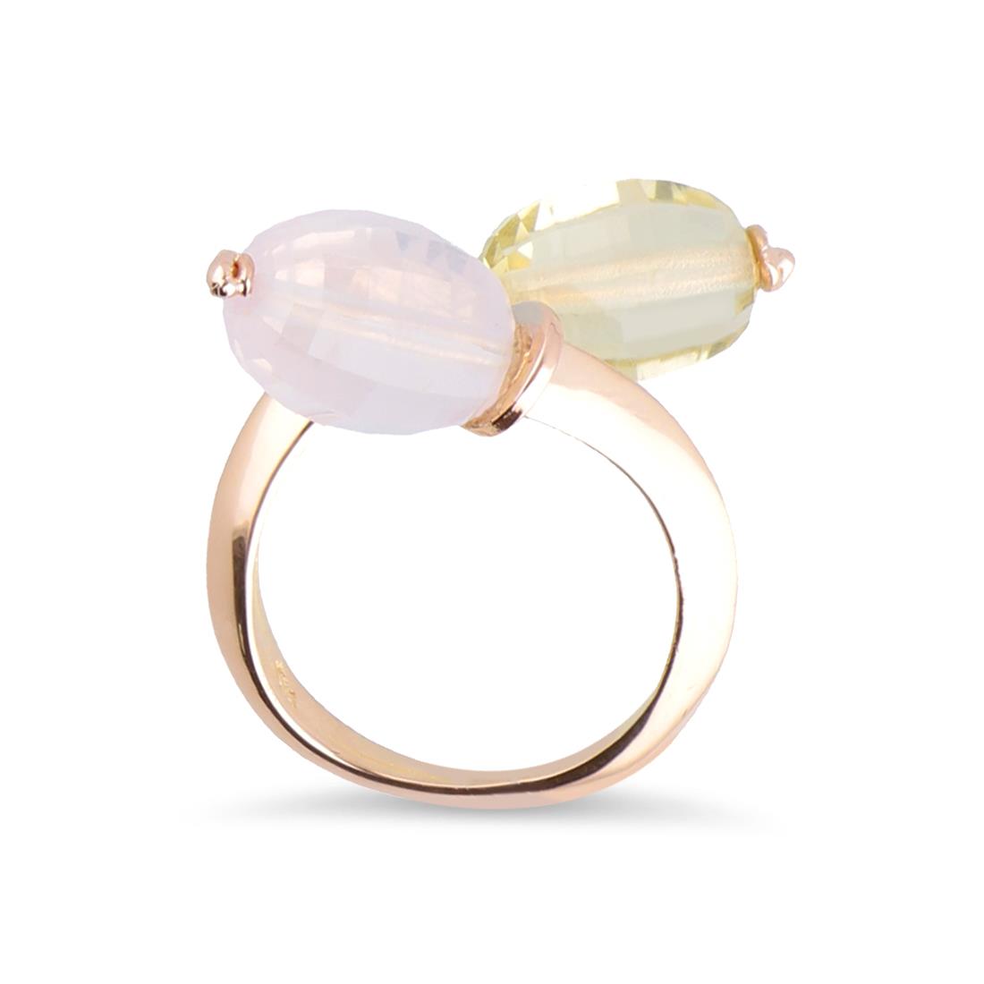 Anello in oro con quarzo rosa e quarzo lemon  - STANOPPI