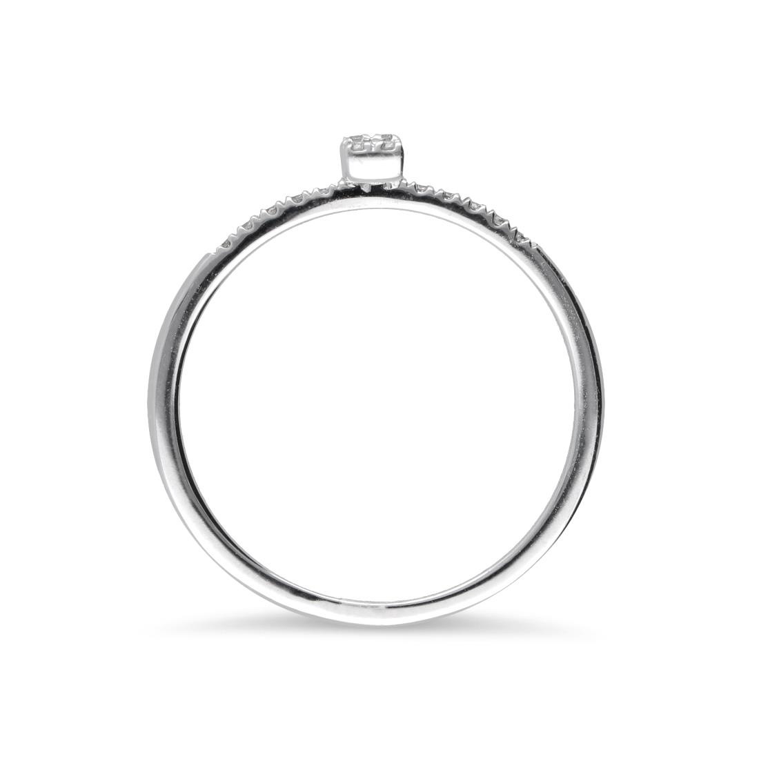 Anello Alfieri&St John in oro bianco con diamanti baguette ct 0,04 e diamanti round sul gambo ct 0,06. Misura 13