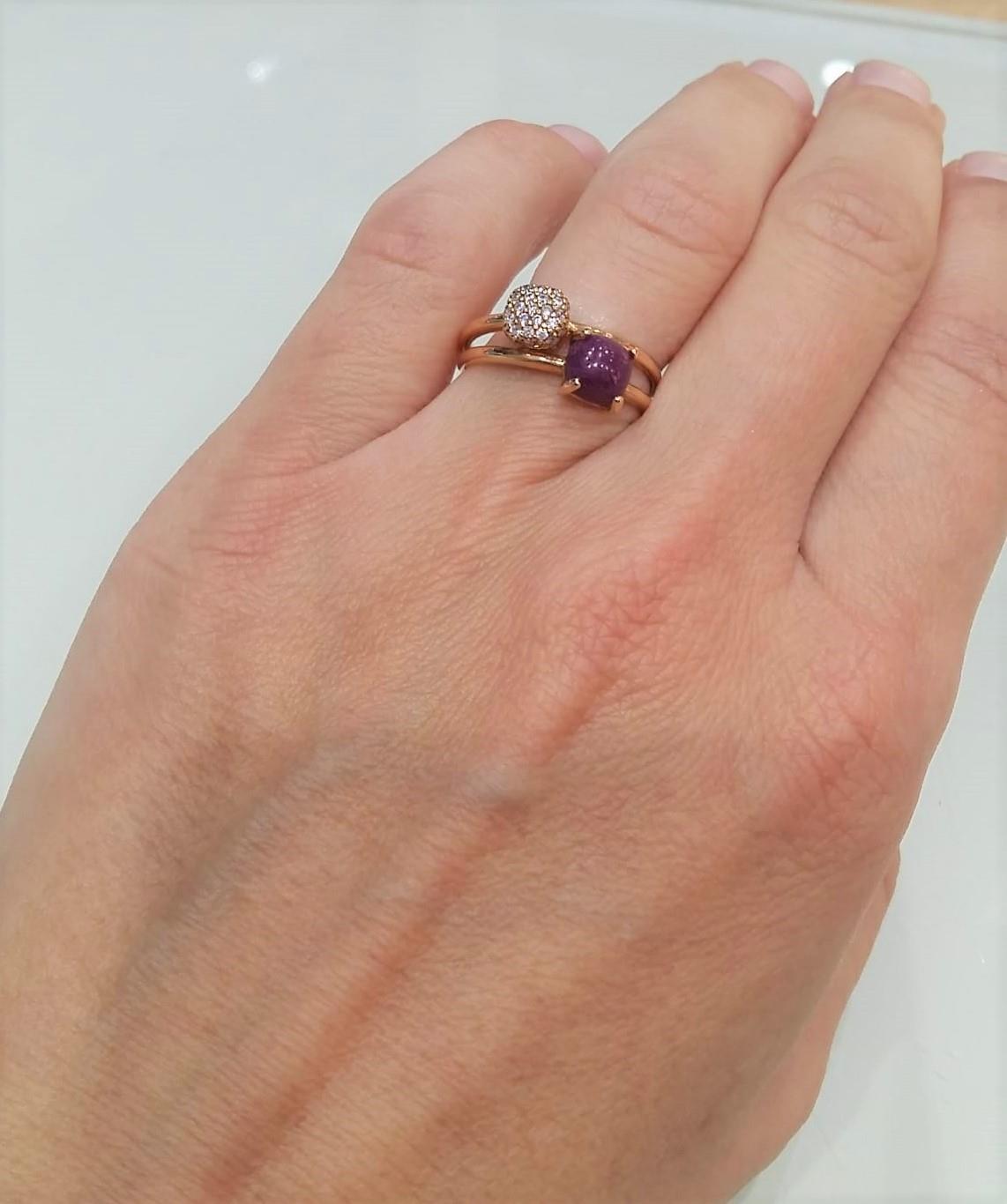 Anello doppio filo Oro&Co in oro rosa con ametista e zirconi. Misura 15