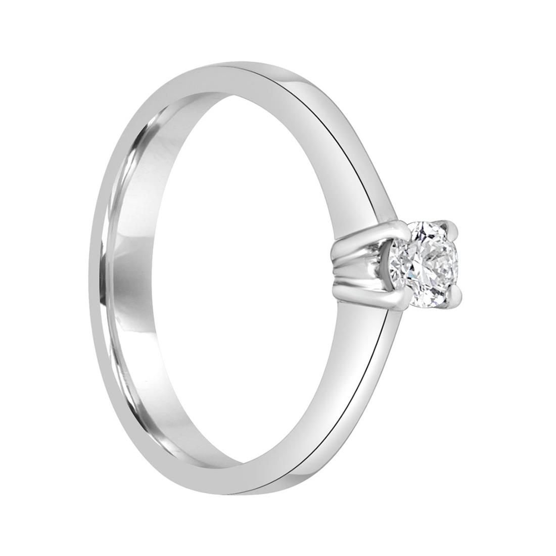 Anello solitario Alfieri & St.John in oro bianco con diamante ct 0,23 colore G purezza SI1. Misura 15