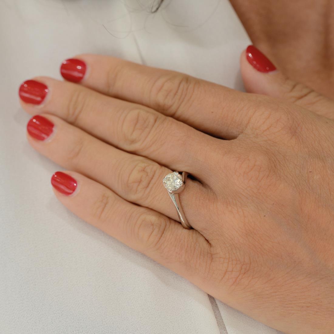 Anello solitario Alfieri & St. John in oro bianco con diamante 1.00 ct colore J purezza VS1