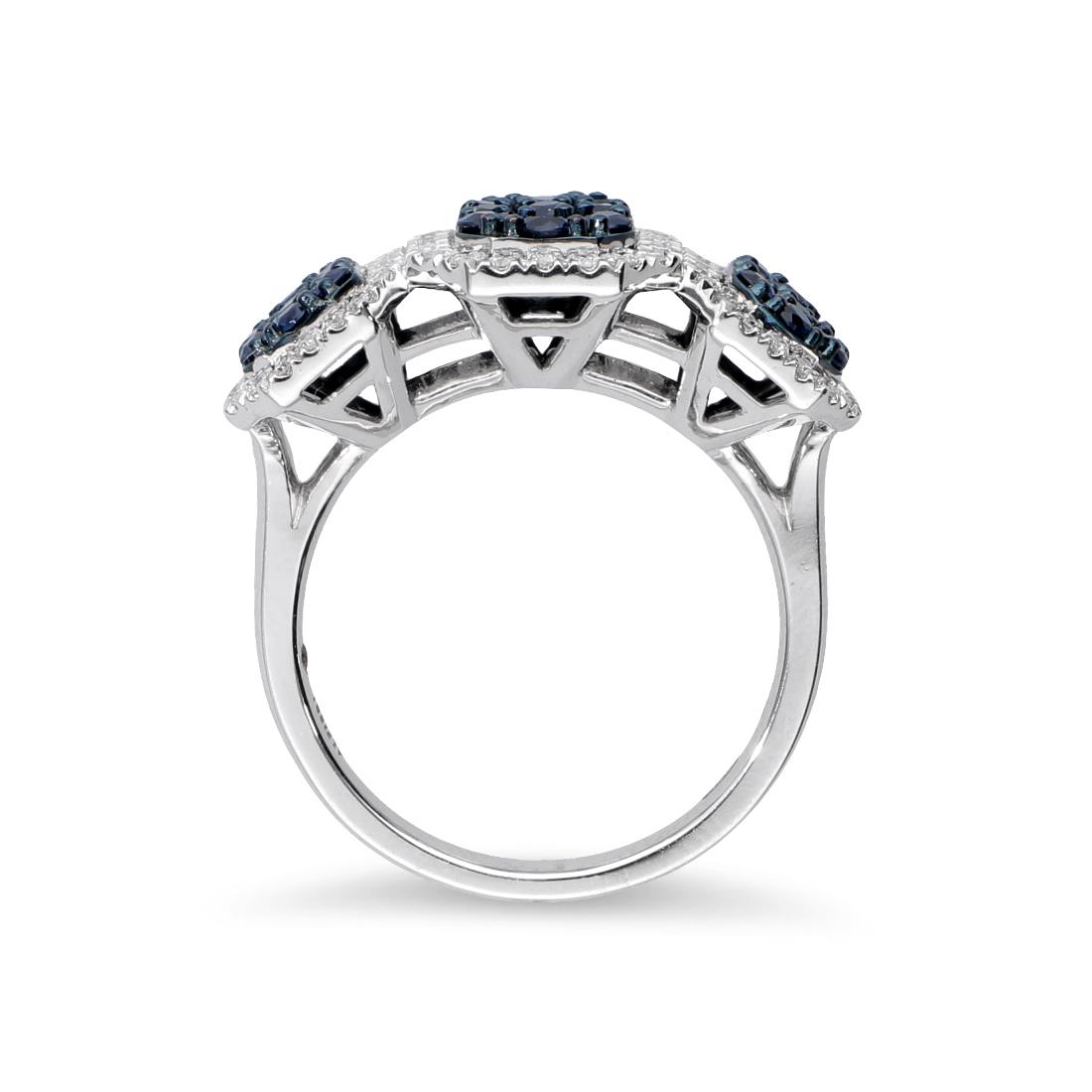 Anello trilogy degradè Alfieri & St. John collezione Allure con pavè di zaffiri ct 1,40 e contorno diamanti ct 0,37. Misura 14.