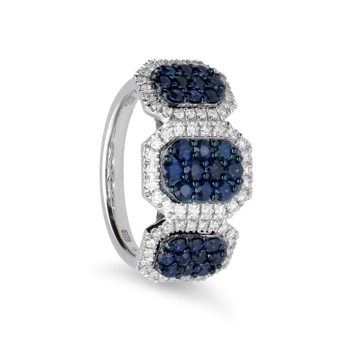 Anello trilogy degradè Allure in oro con zaffiri ct. 1,40 e diamanti ct. 0,37 - ALFIERI & ST. JOHN