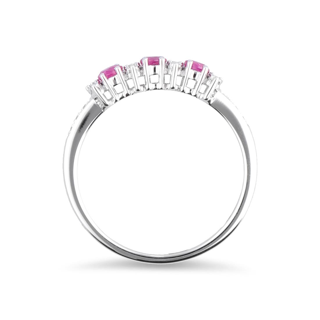 Anello trilogy in oro bianco con diamanti ct 0,04 colore H purezza SI2 e rubini ct 0,48. misura 14
