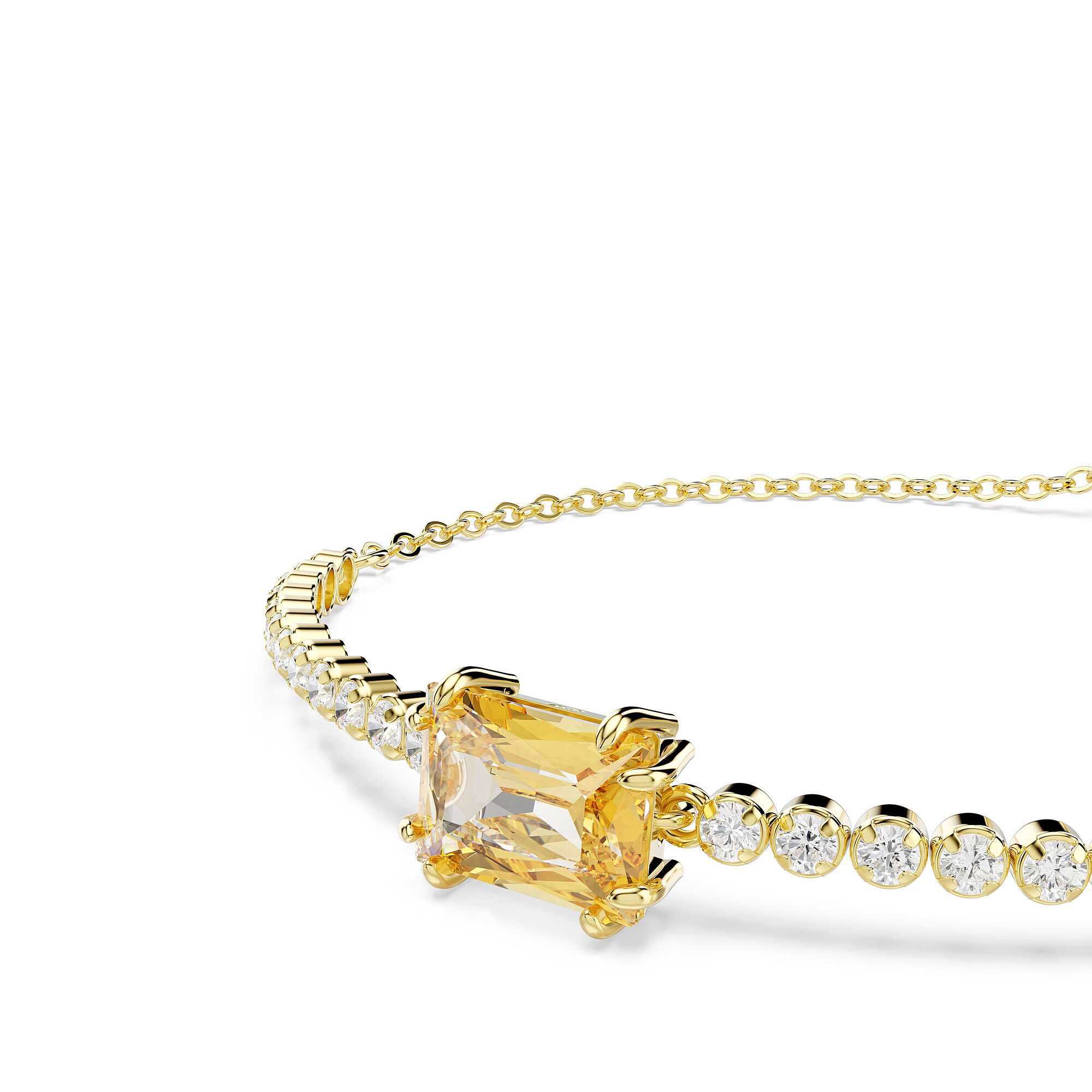 Bracciale Swarovski collezione Matrix placcato color oro caramello con cristalli marroni taglio misto. Lunghezza: 12 - 24 cm. Dimensione decorazione: 0.6 x 0.9 cm.