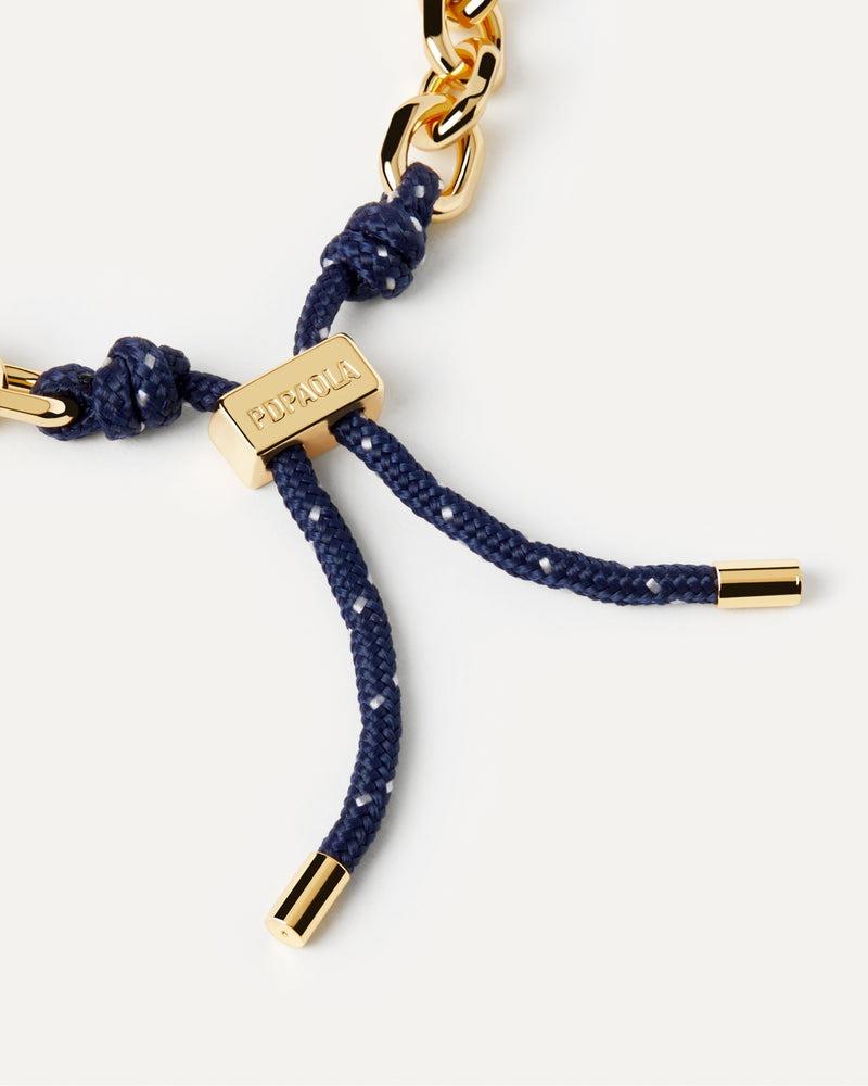 Bracciale a catena PDPaola collezione Essential in argento placcato oro giallo 18kt con corda di colore blu. Regolabile da 18 a 24 cm.