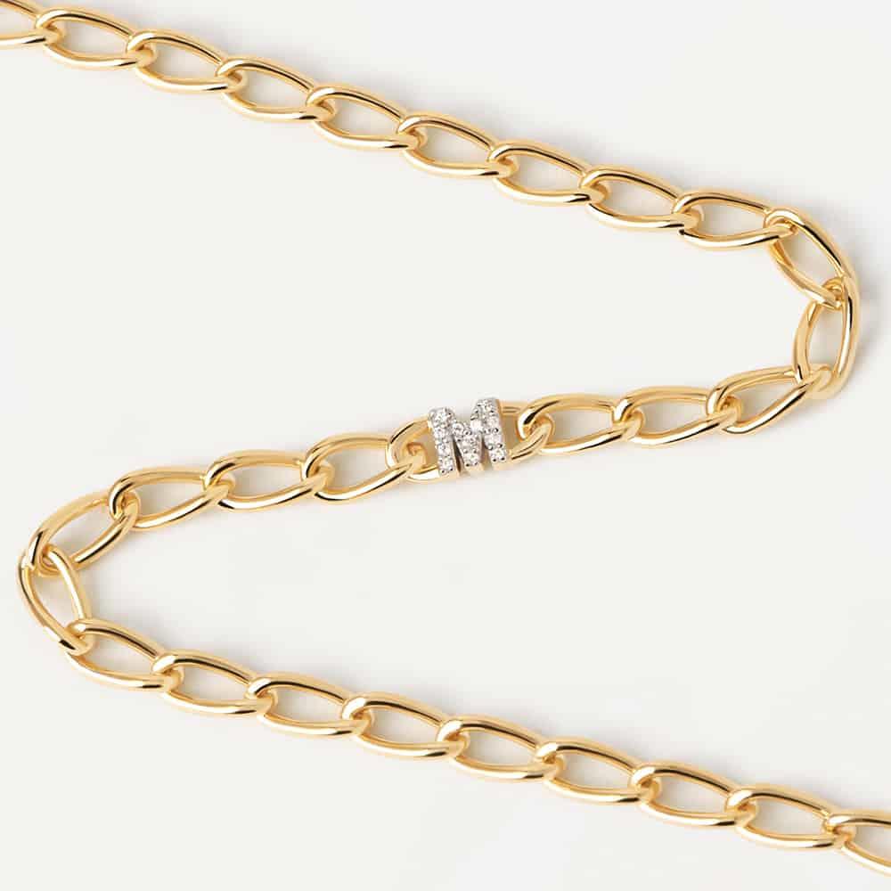 Bracciale PDPaola collezione Mini letters in argento placcato oro giallo 18kt con lettera M. Chiusura a moschettone.