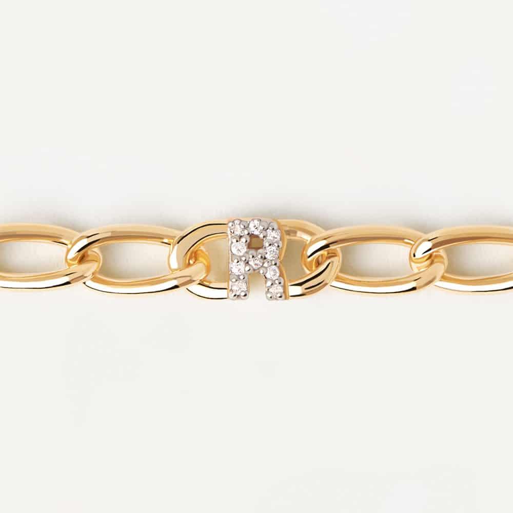 Bracciale PDPaola collezione Mini letters in argento placcato oro giallo 18kt con lettera R. Chiusura a moschettone.