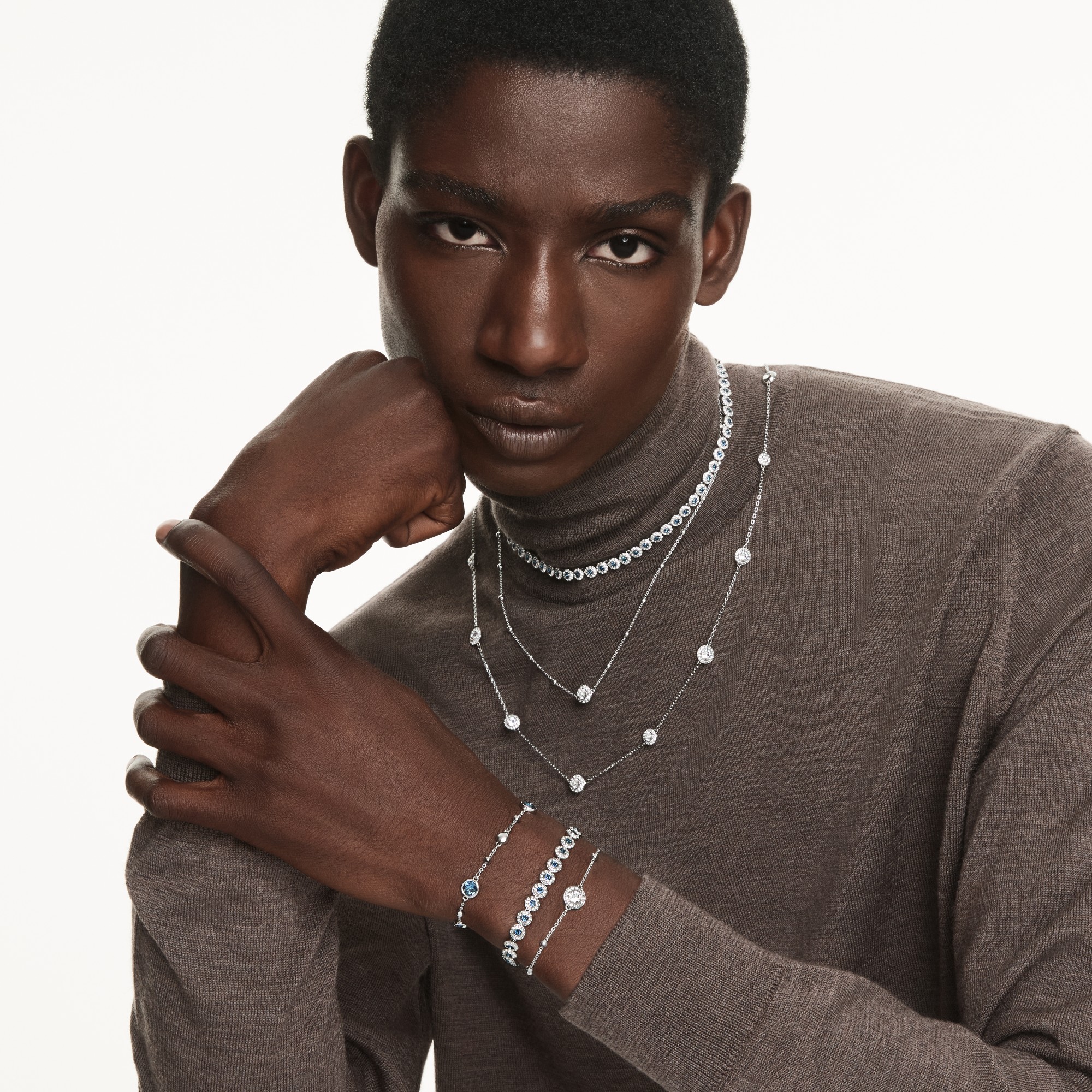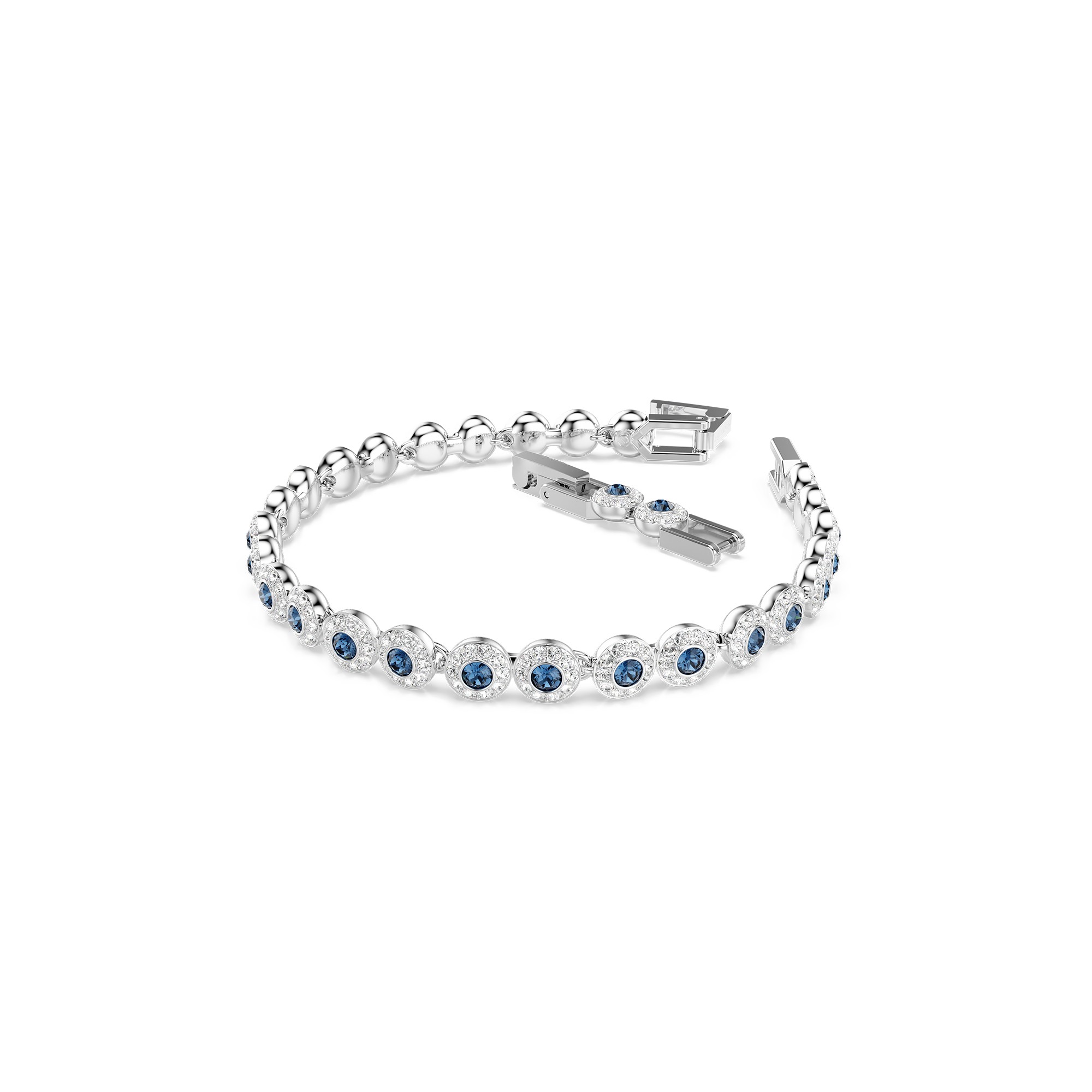 Bracciale da donna Swarovski della collezione Una Angelic, placcato in rodio blu e arricchito da cristalli Swarovski blu a taglio tondo. Un elegante tennis bracelet della famiglia Una Angelic, dotato di prolunga regolabile e caratterizzato da una fila di cristalli rotondi in una vivace tonalità di blu, impreziositi da pavé brillante. Perfetto da abbinare alla collana coordinata. Dimensioni: lunghezza 16,5–19 cm, ampiezza 0,6 cm. Referenza: 5733401.