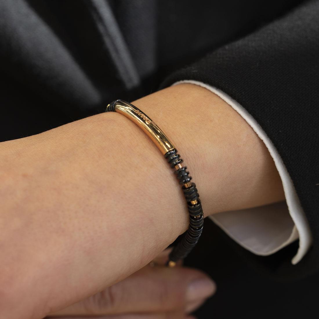 Bracciale da uomo Barakà in oro rosa e ceramica nera. Lunghezza 21 cm