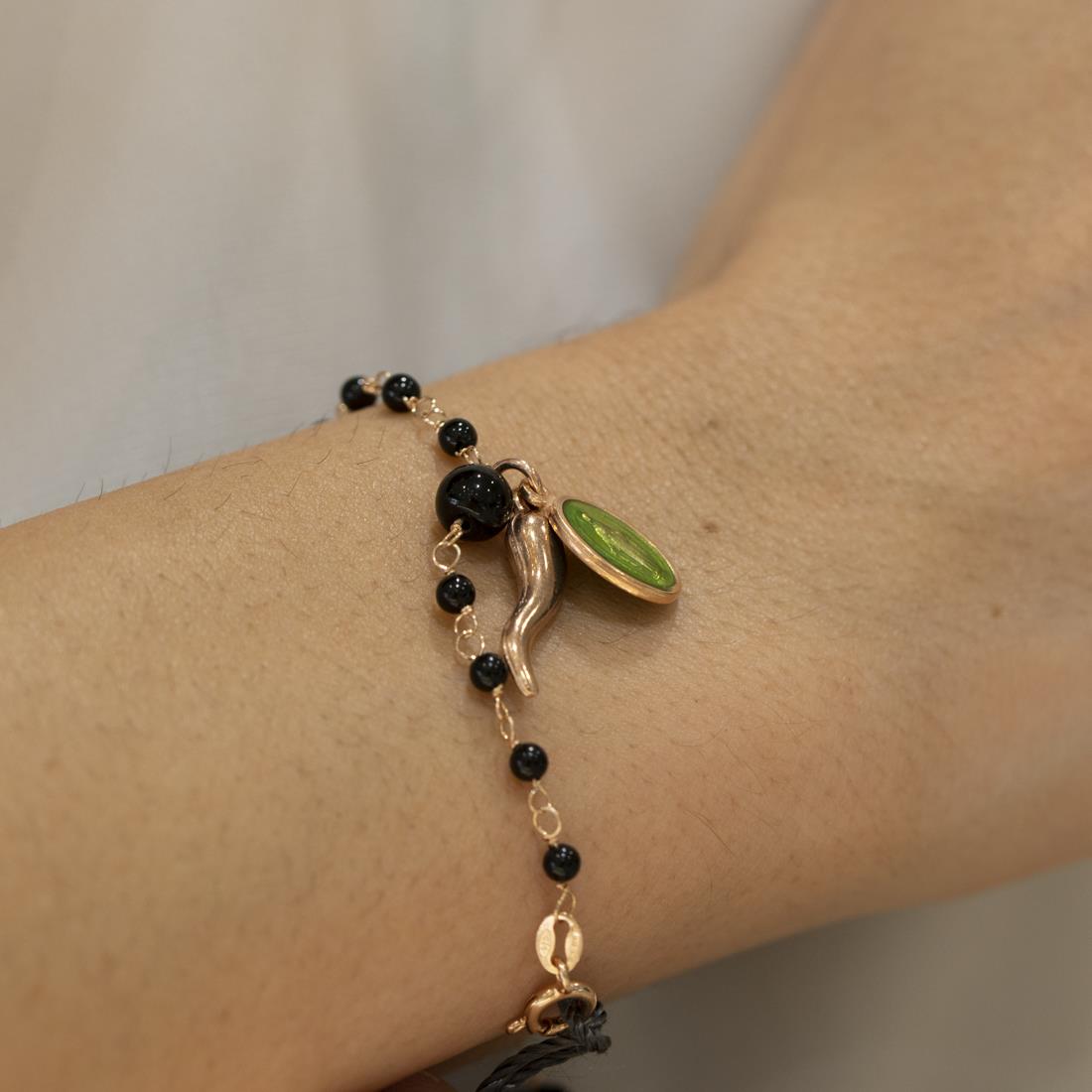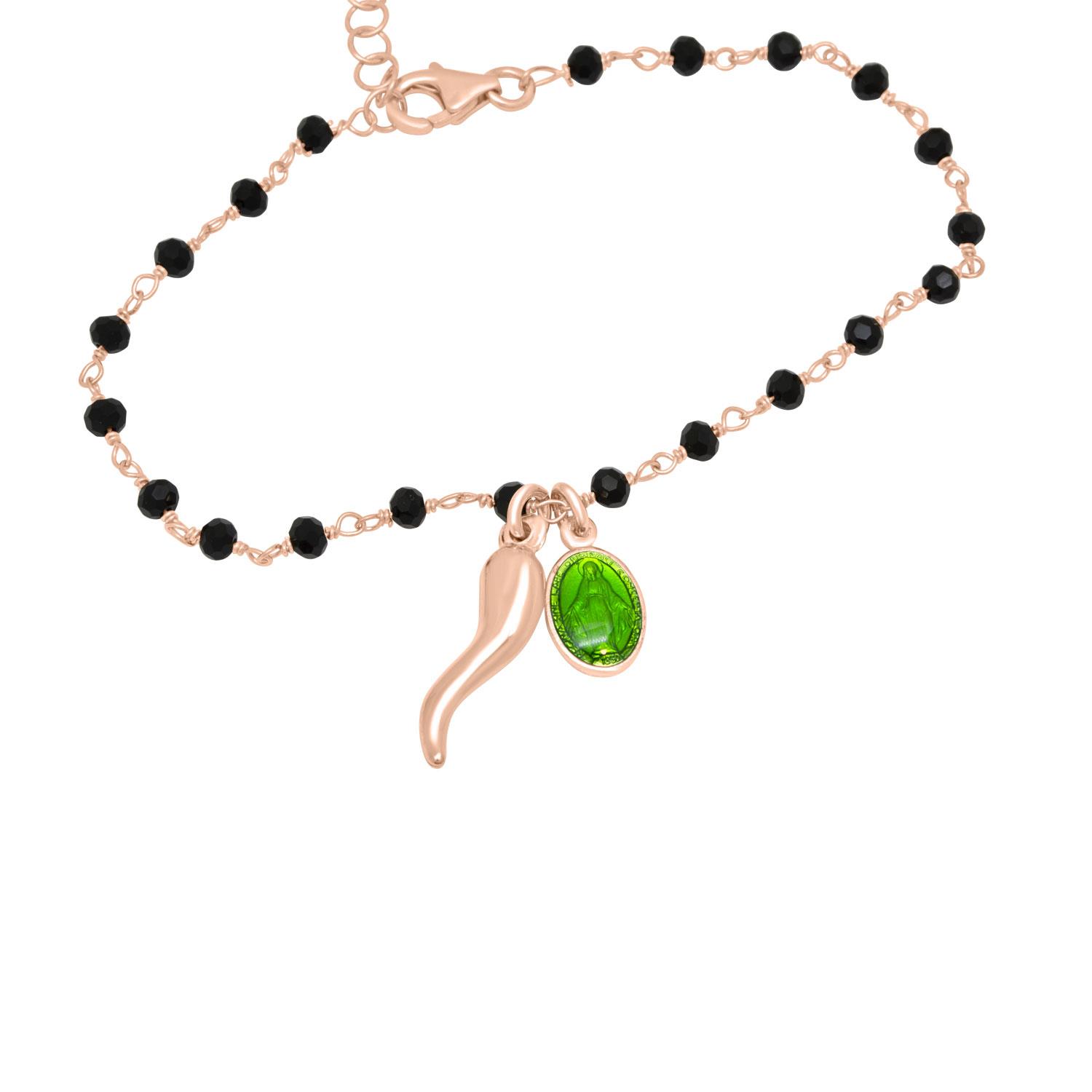 Bracciale design ORO&CO in argento rosè con pietre nere , lunghezza 16-20 cm